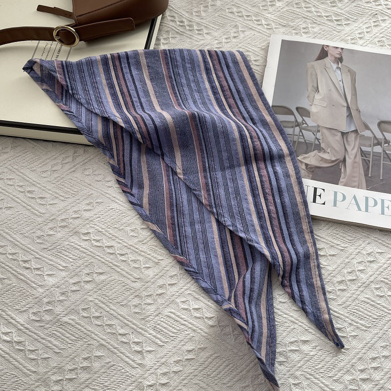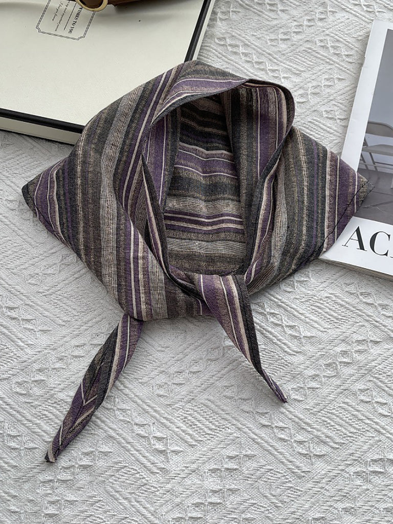 Women Vintage Stripe 100%Cotton Triangle Scarf