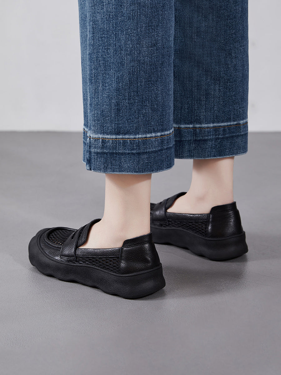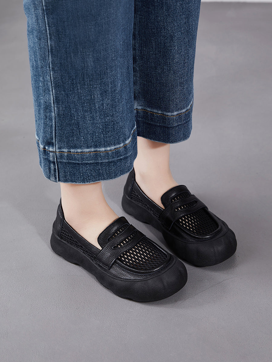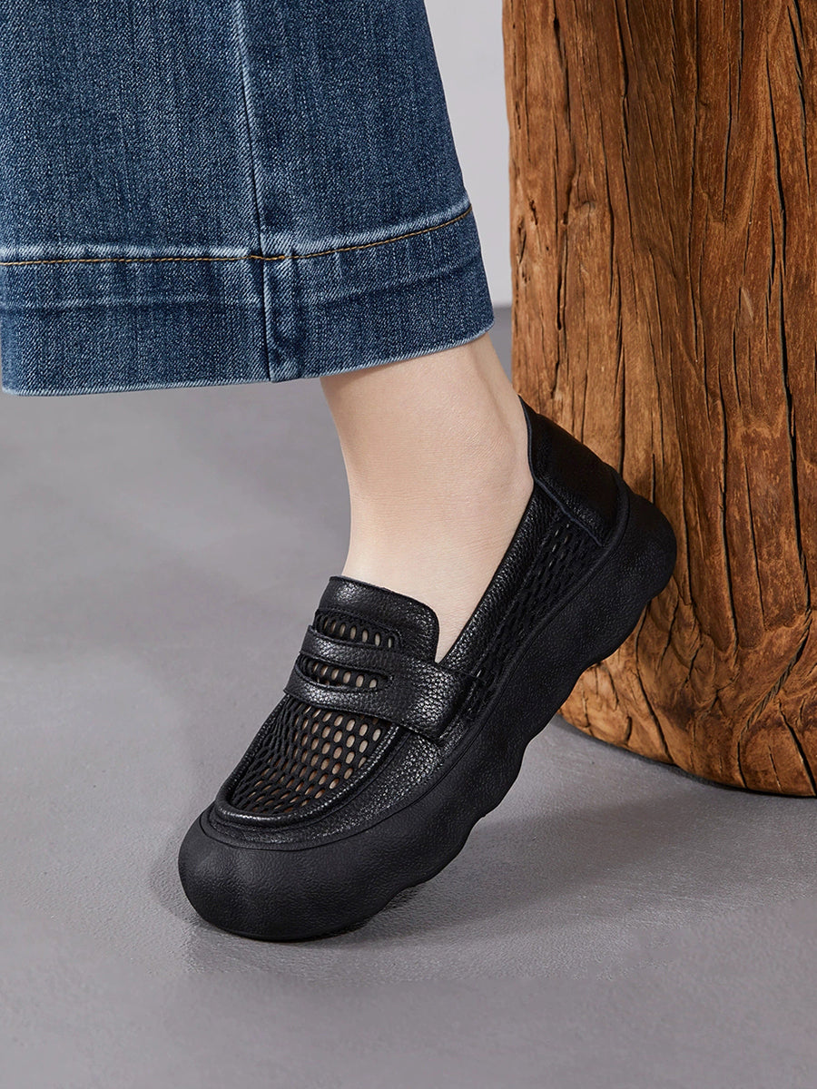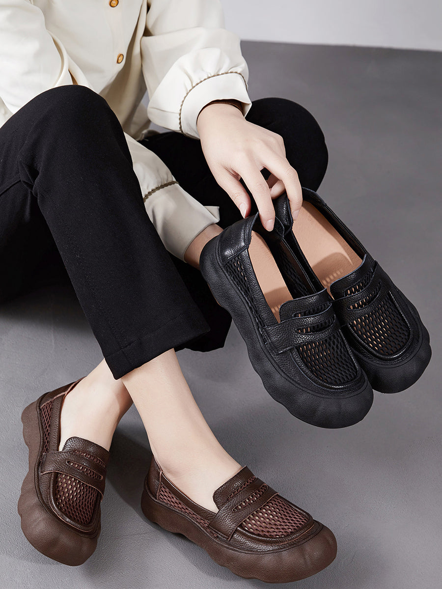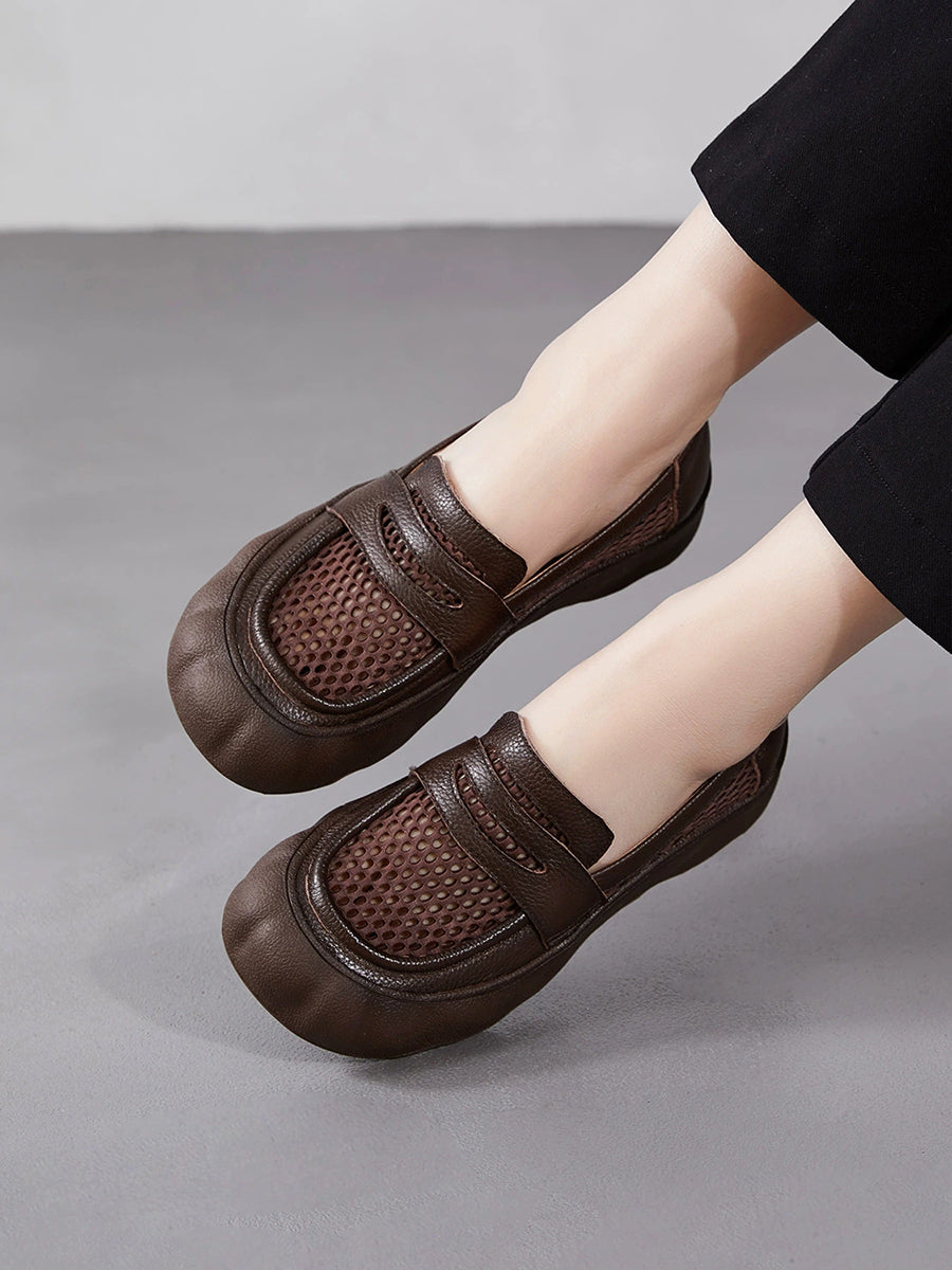 Women Vintage Genuine Leather Hollow Out Flat Shoes