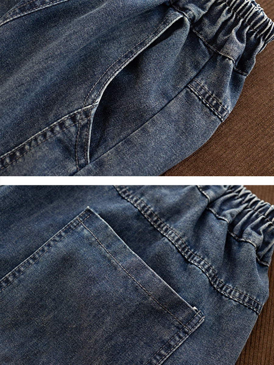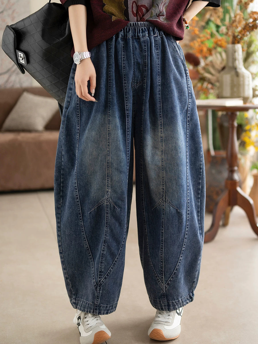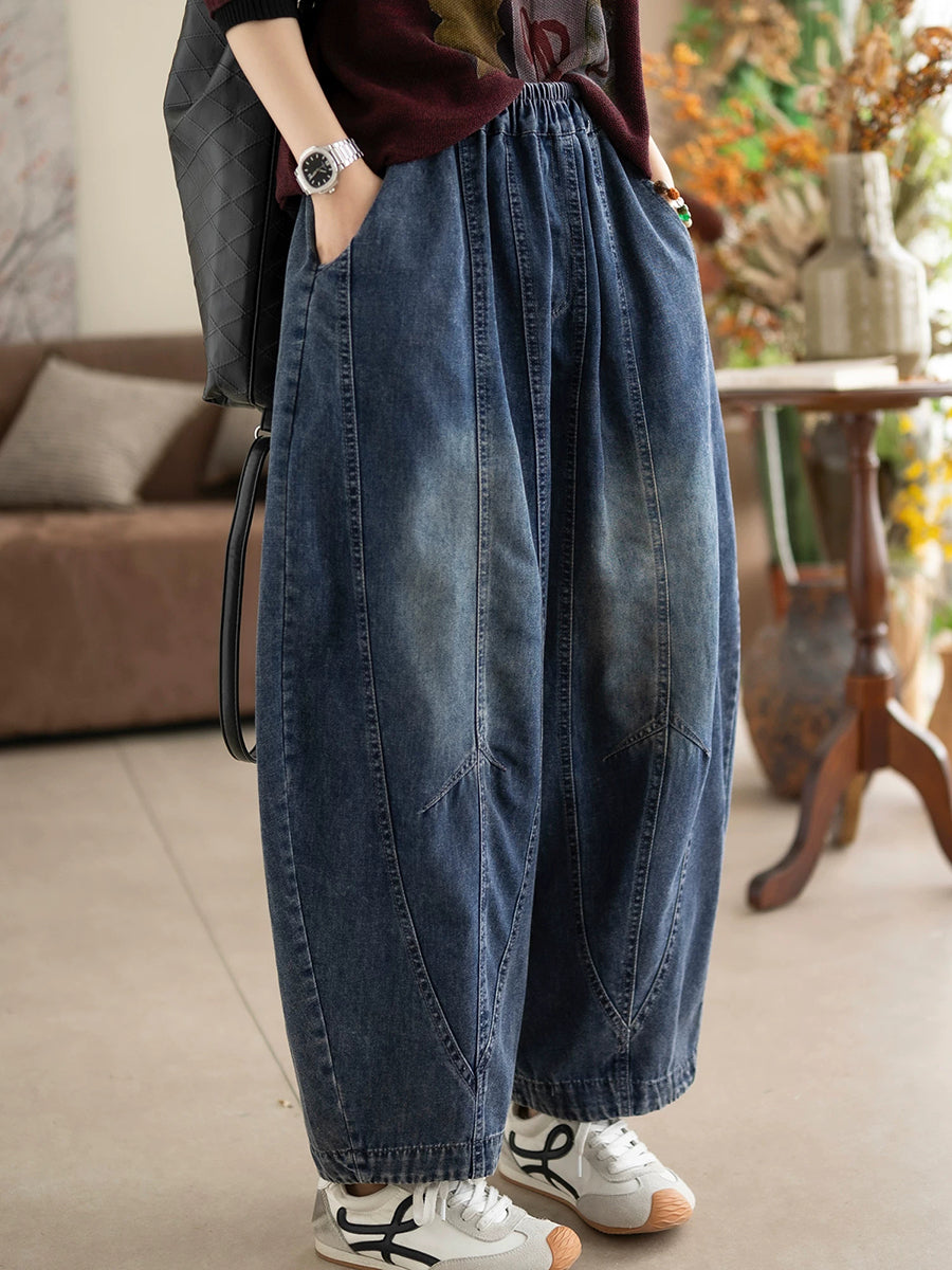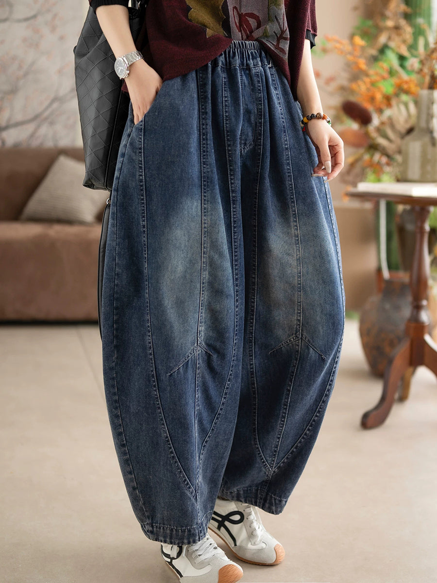 Women Spring Vintage Denim Spliced Harem Pants