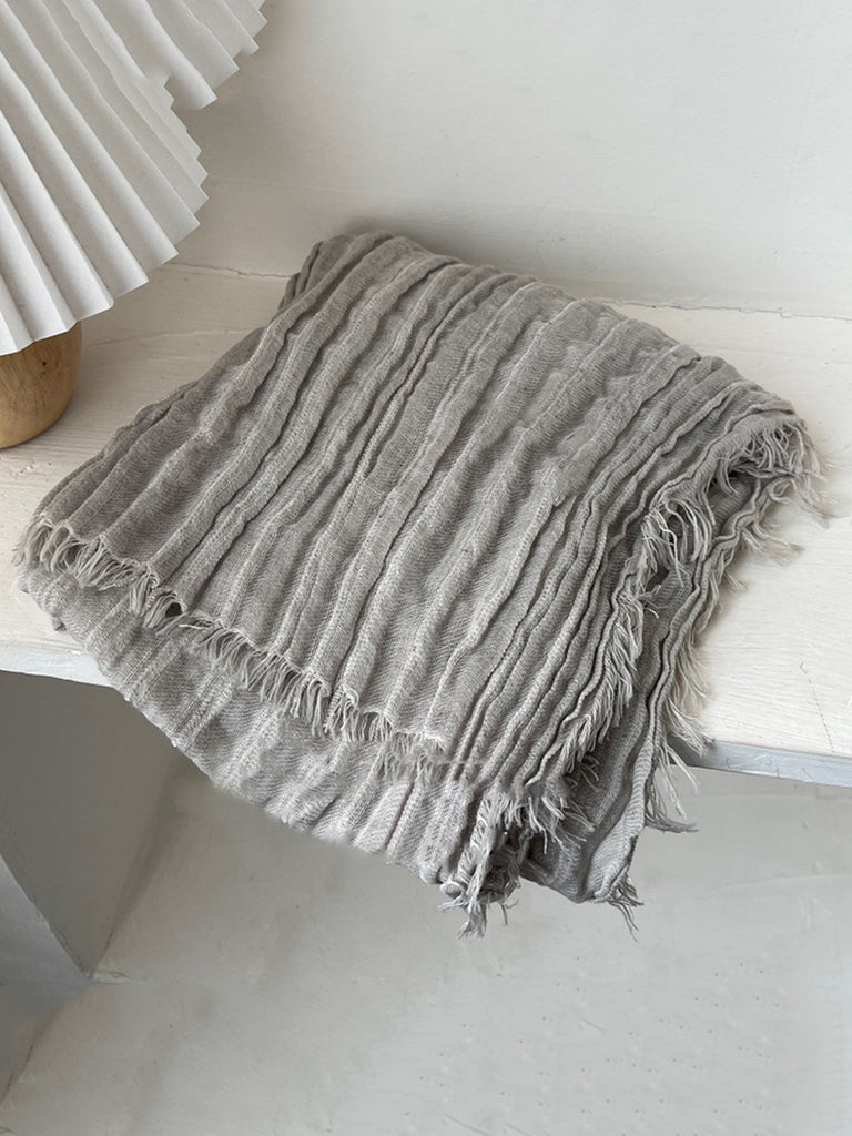 Women Vintage Shirred Pure Color Tassel Shawl Scarf