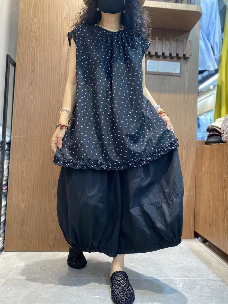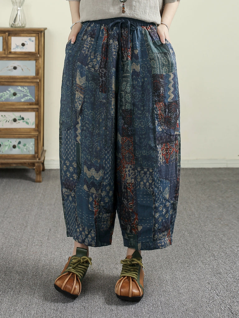 Women Summer Pure Color 100%Linen Wide-leg Cropped Pants