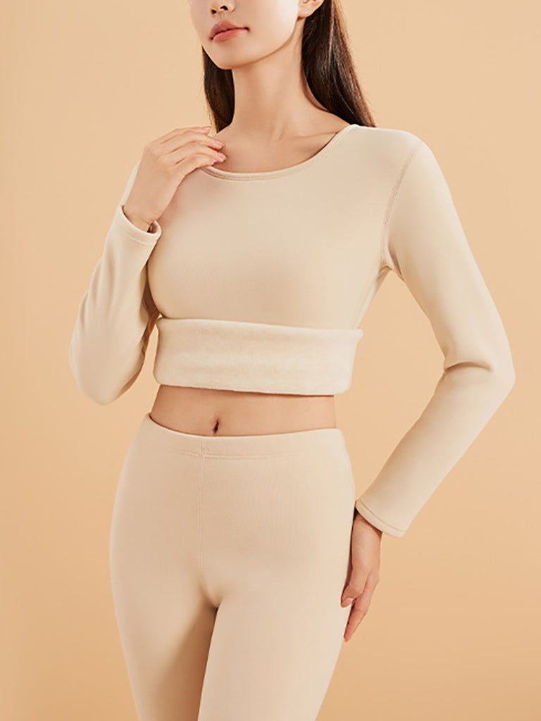 Women Winter Retro Pure Color Stitching O-Neck Blouse