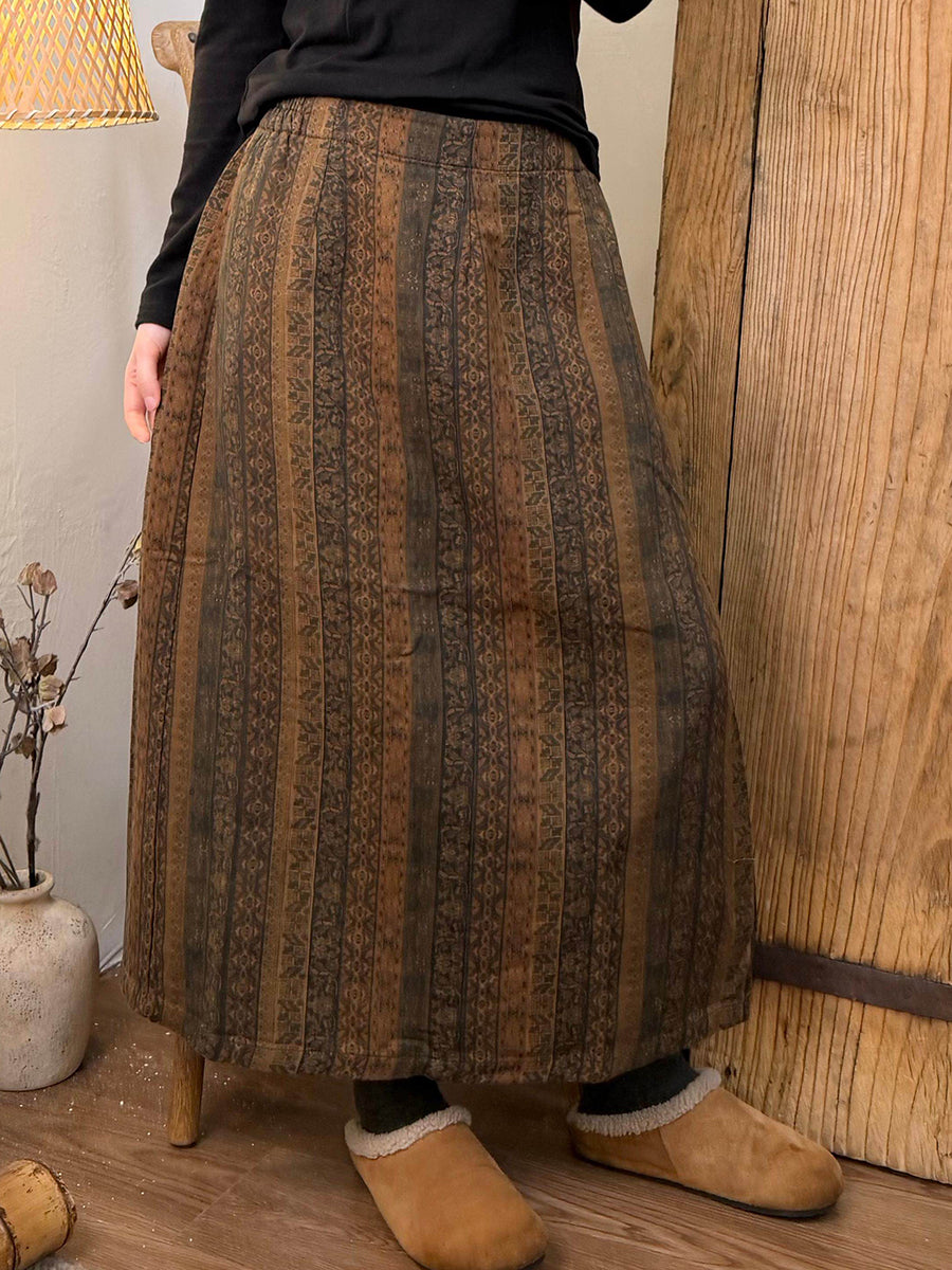 Women Spring Vintage Flower Cotton A-Shape Skirt