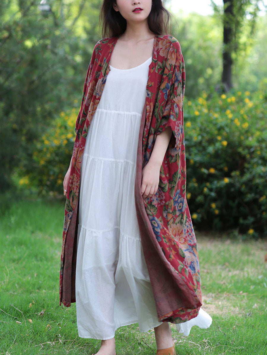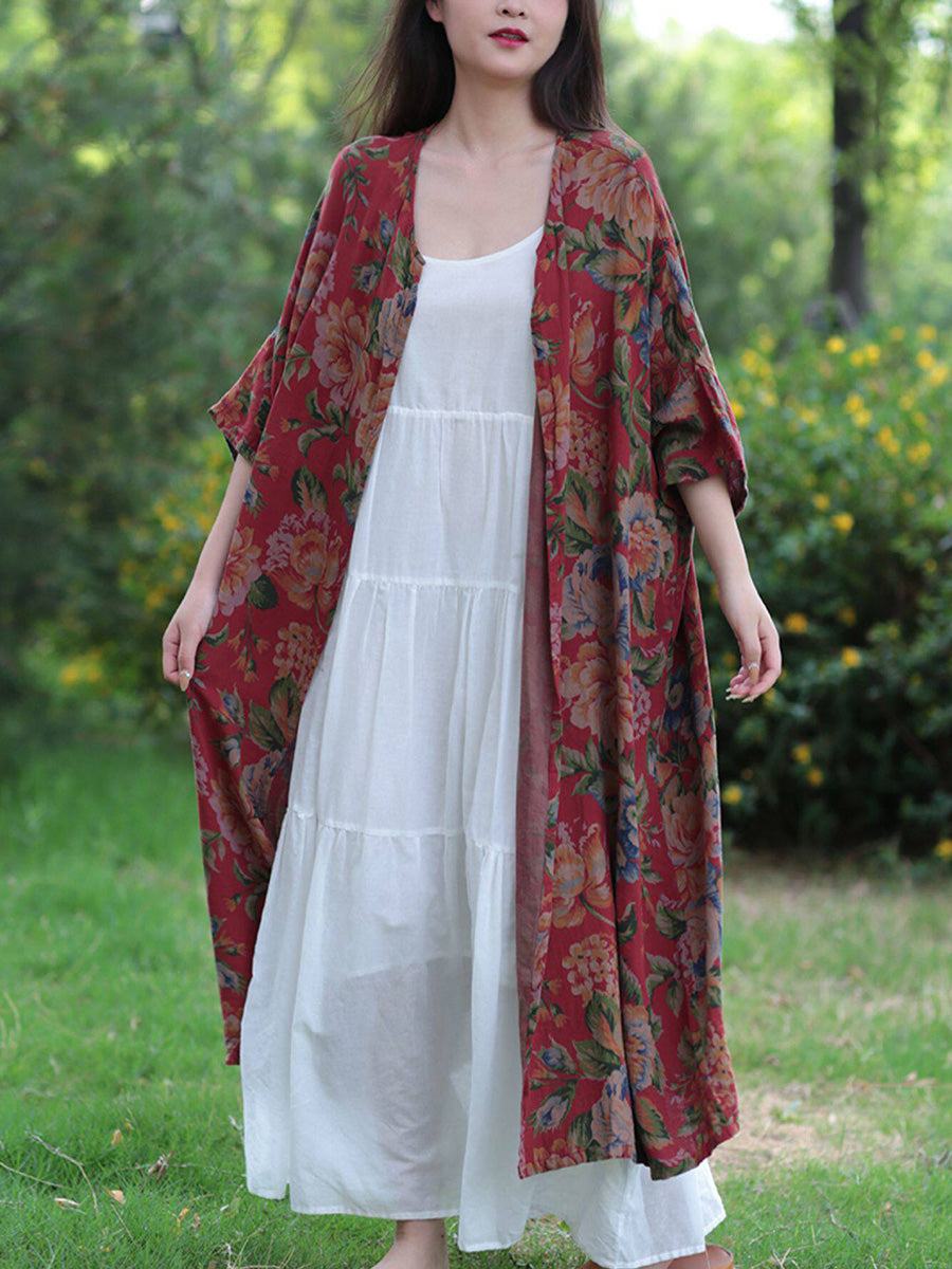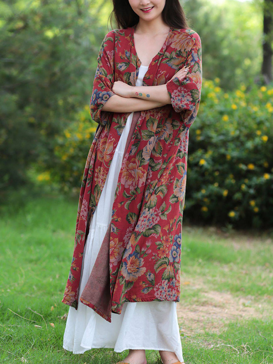 Women Summer Vintage Flower 100%Cotton V-Neck Blouse