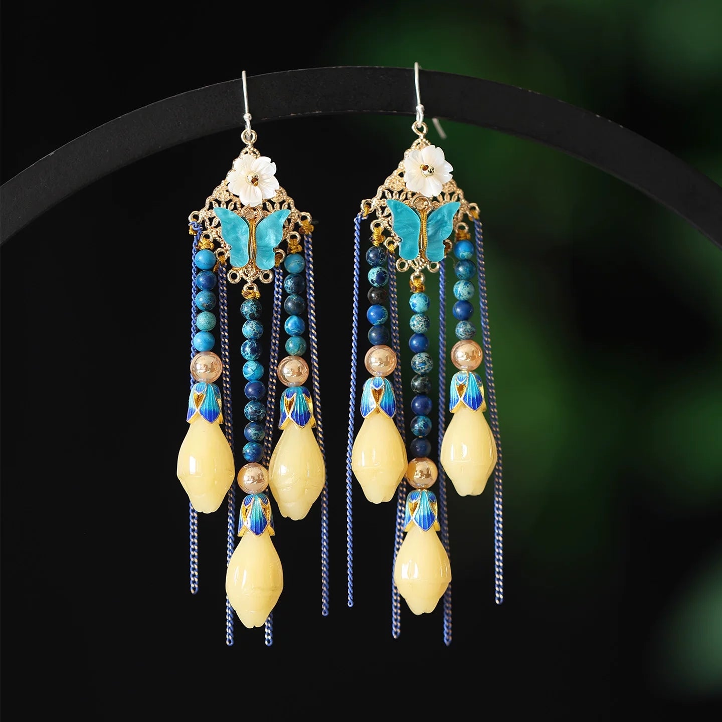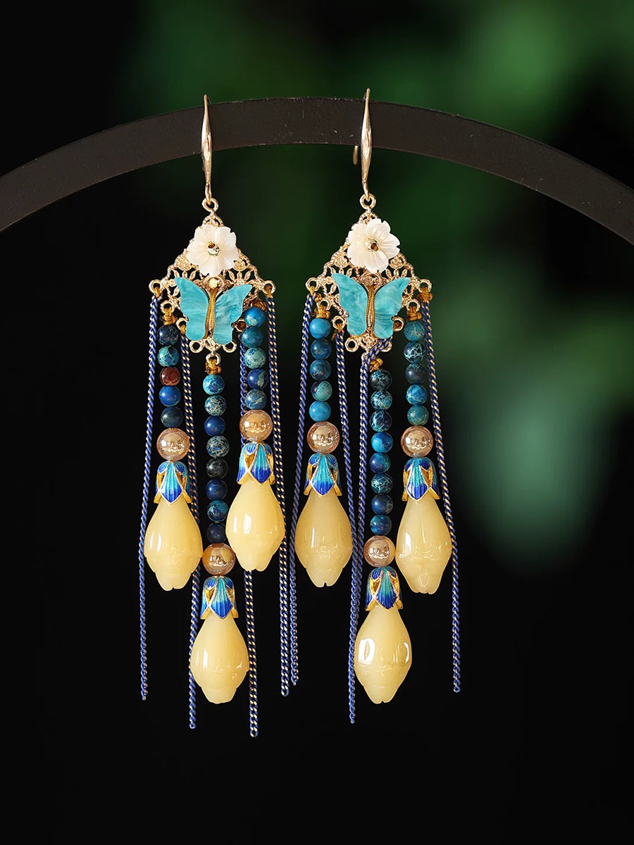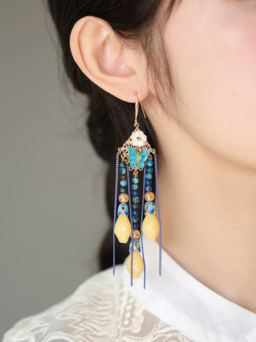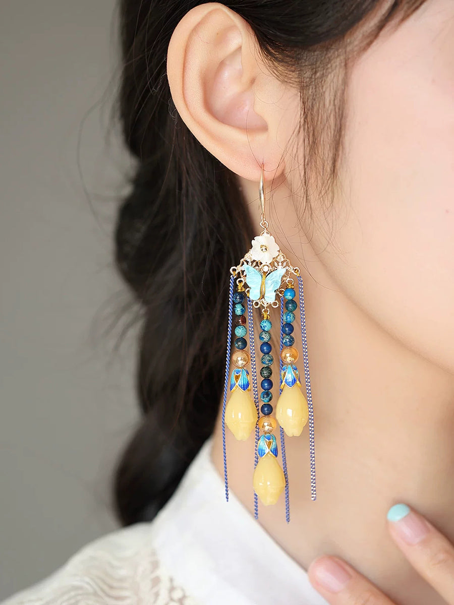 Vintage Butterfly Beads Tassel Earrings