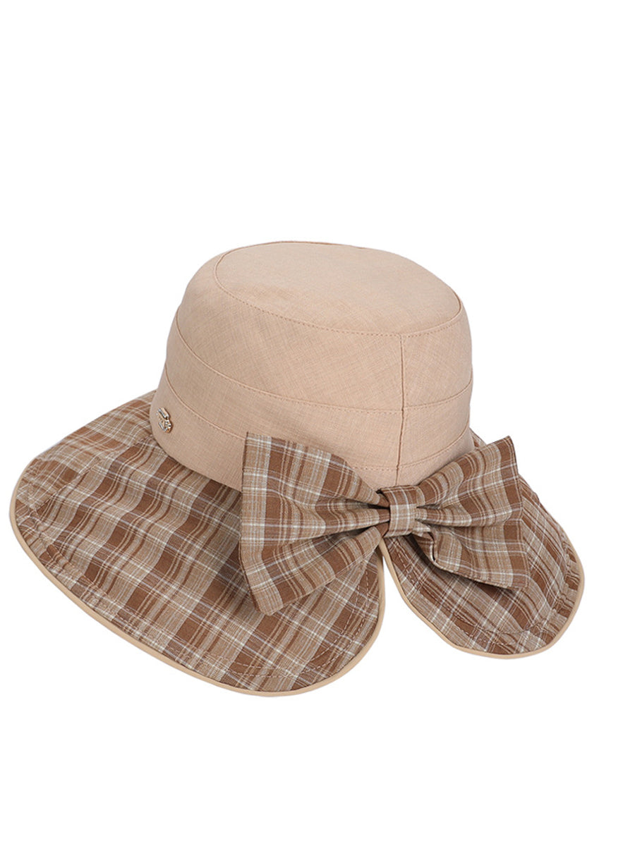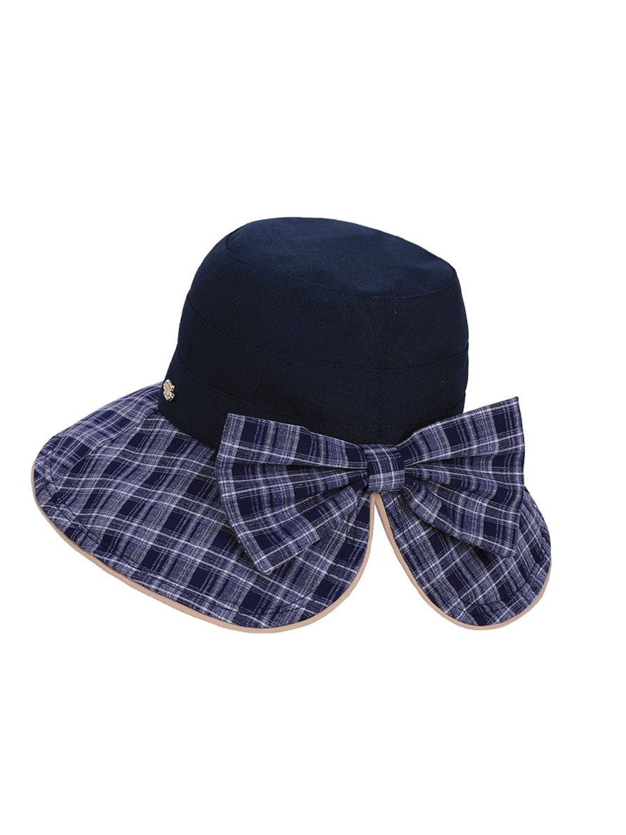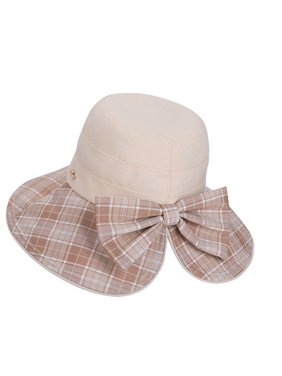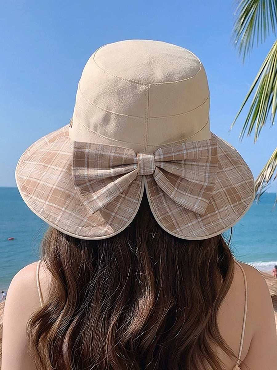 Women Summer Plaid Spliced Bowknot Sunproof Hat
