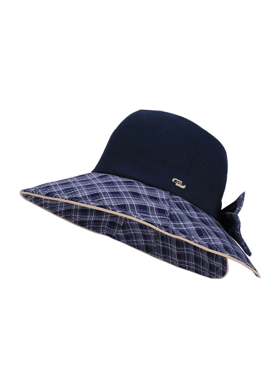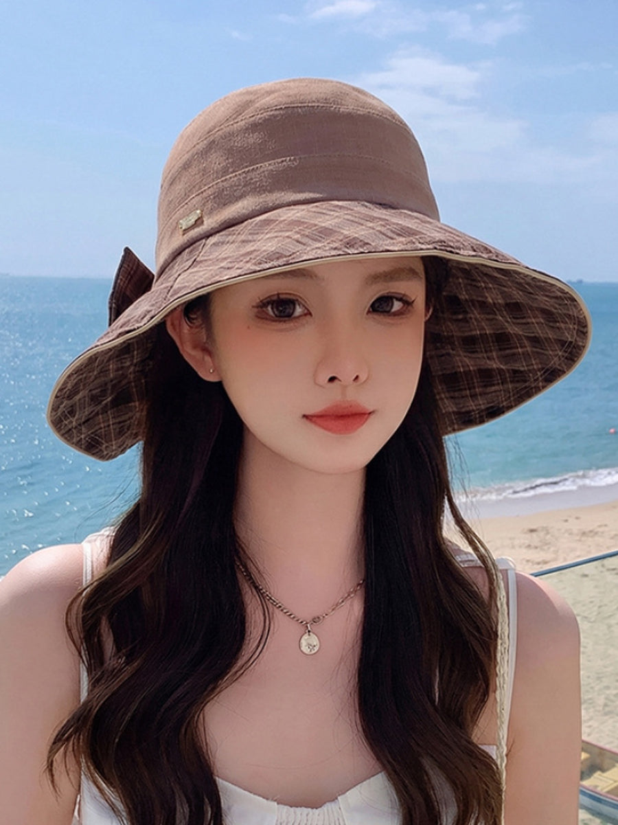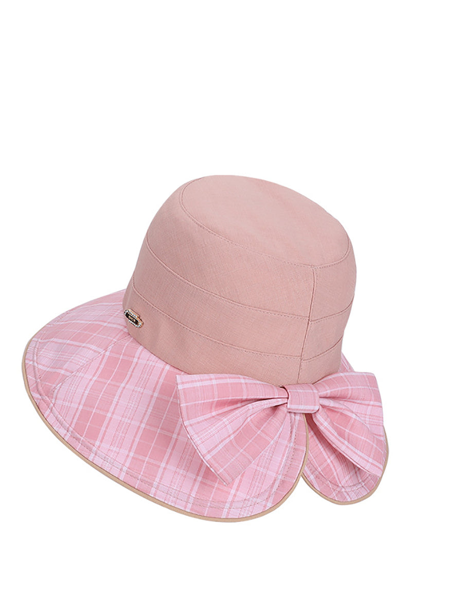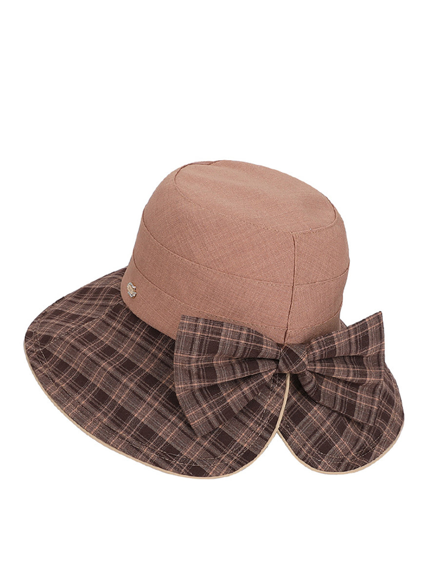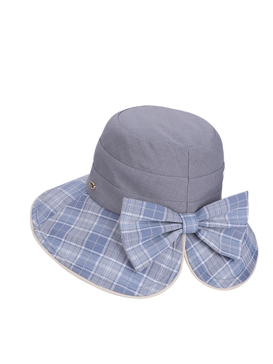 Women Summer Plaid Spliced Bowknot Sunproof Hat