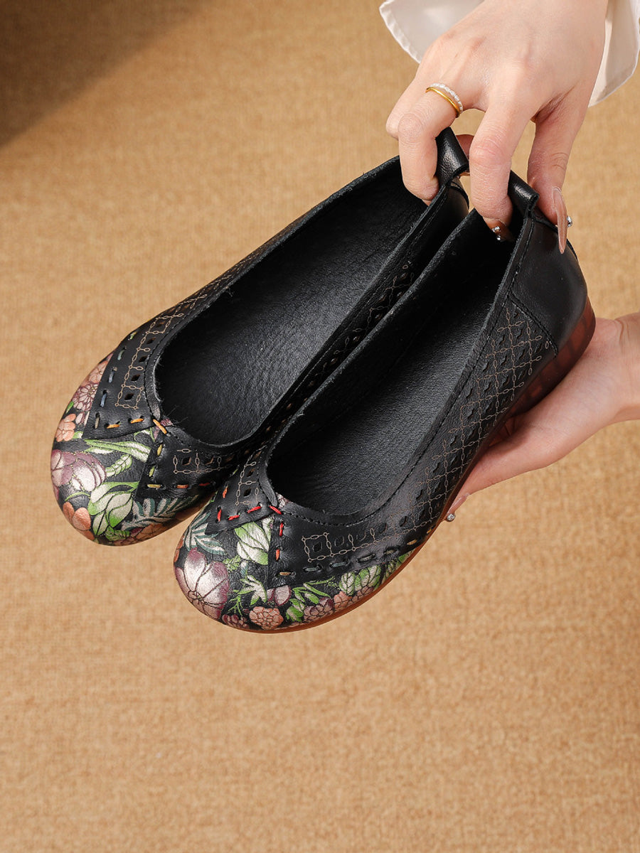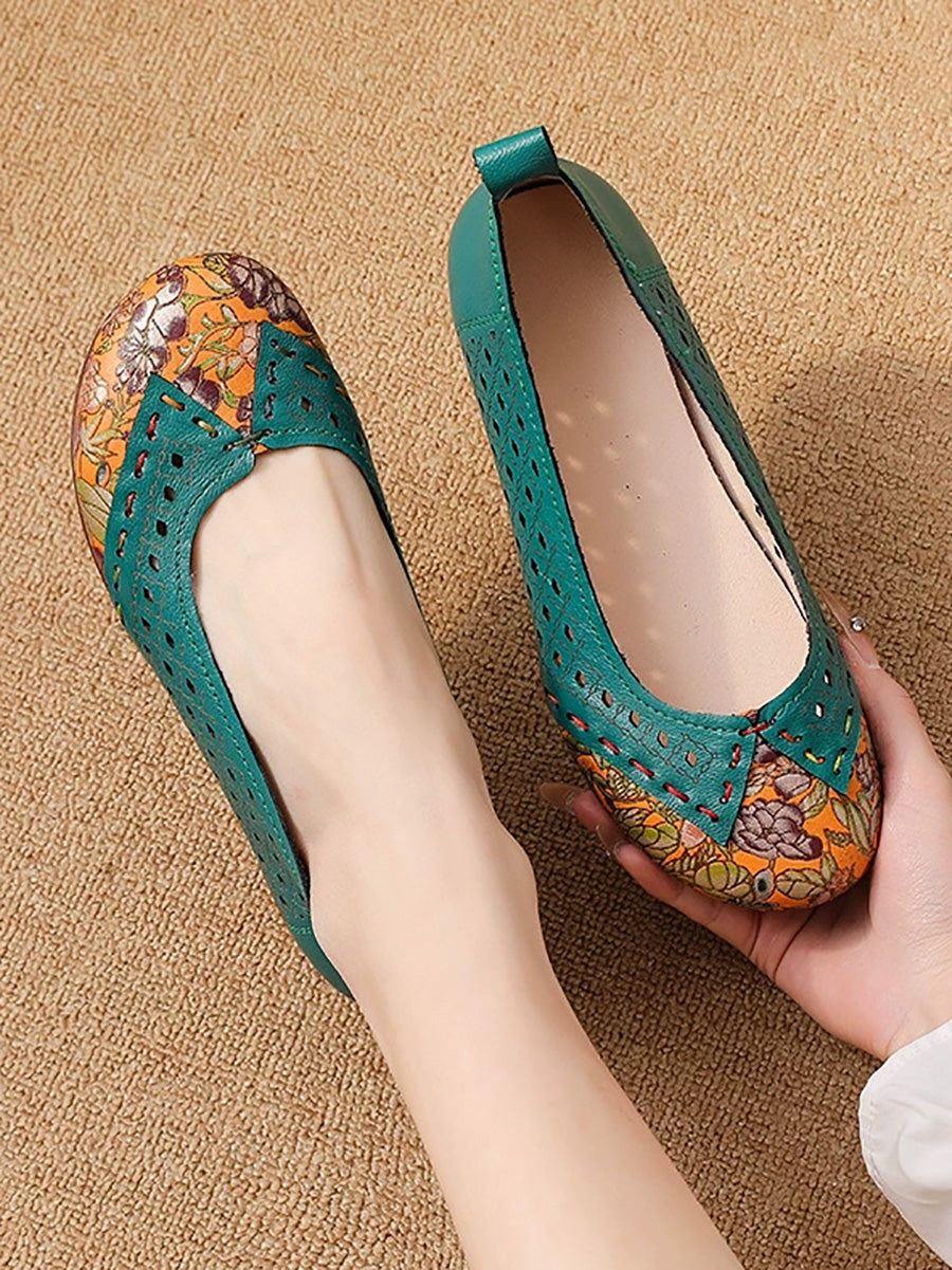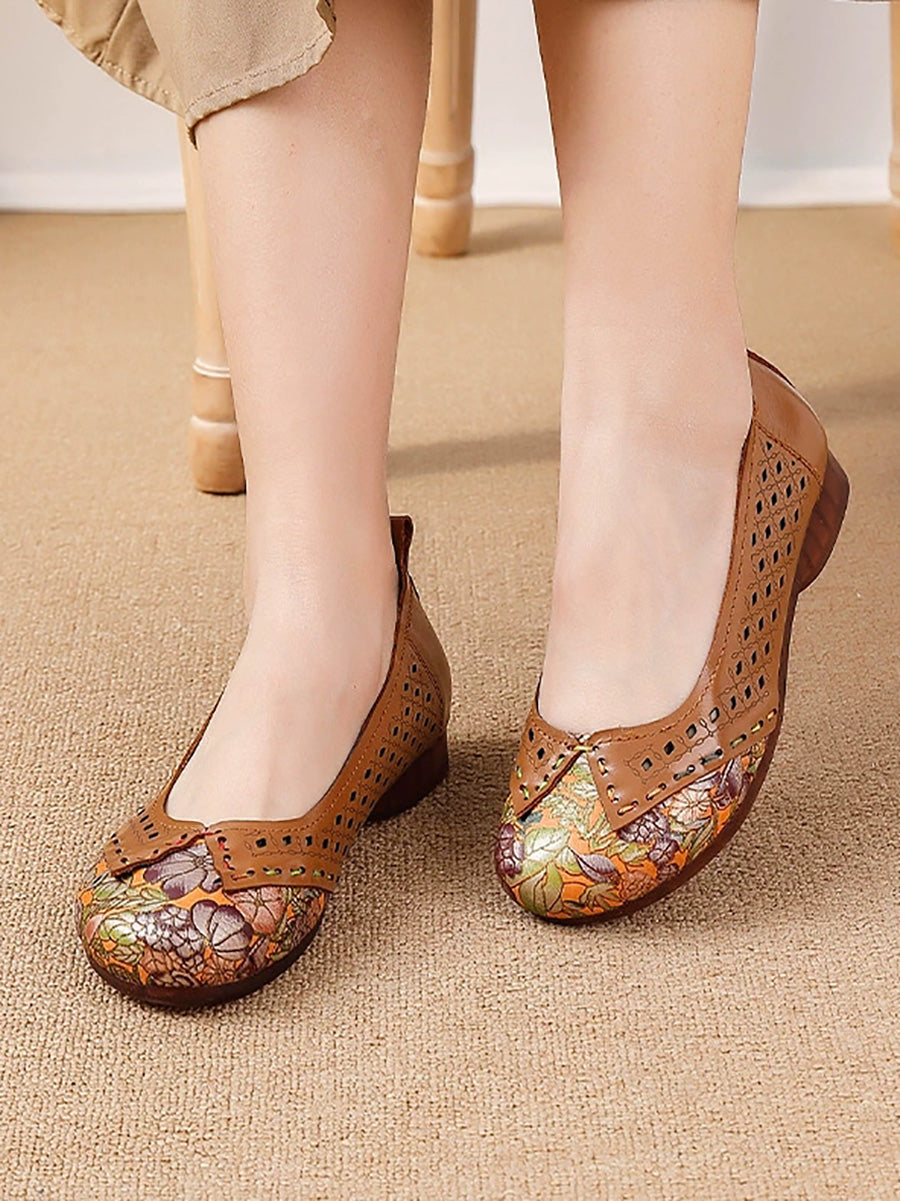 Women Vintage Leather Spliced Low Heel Shoes