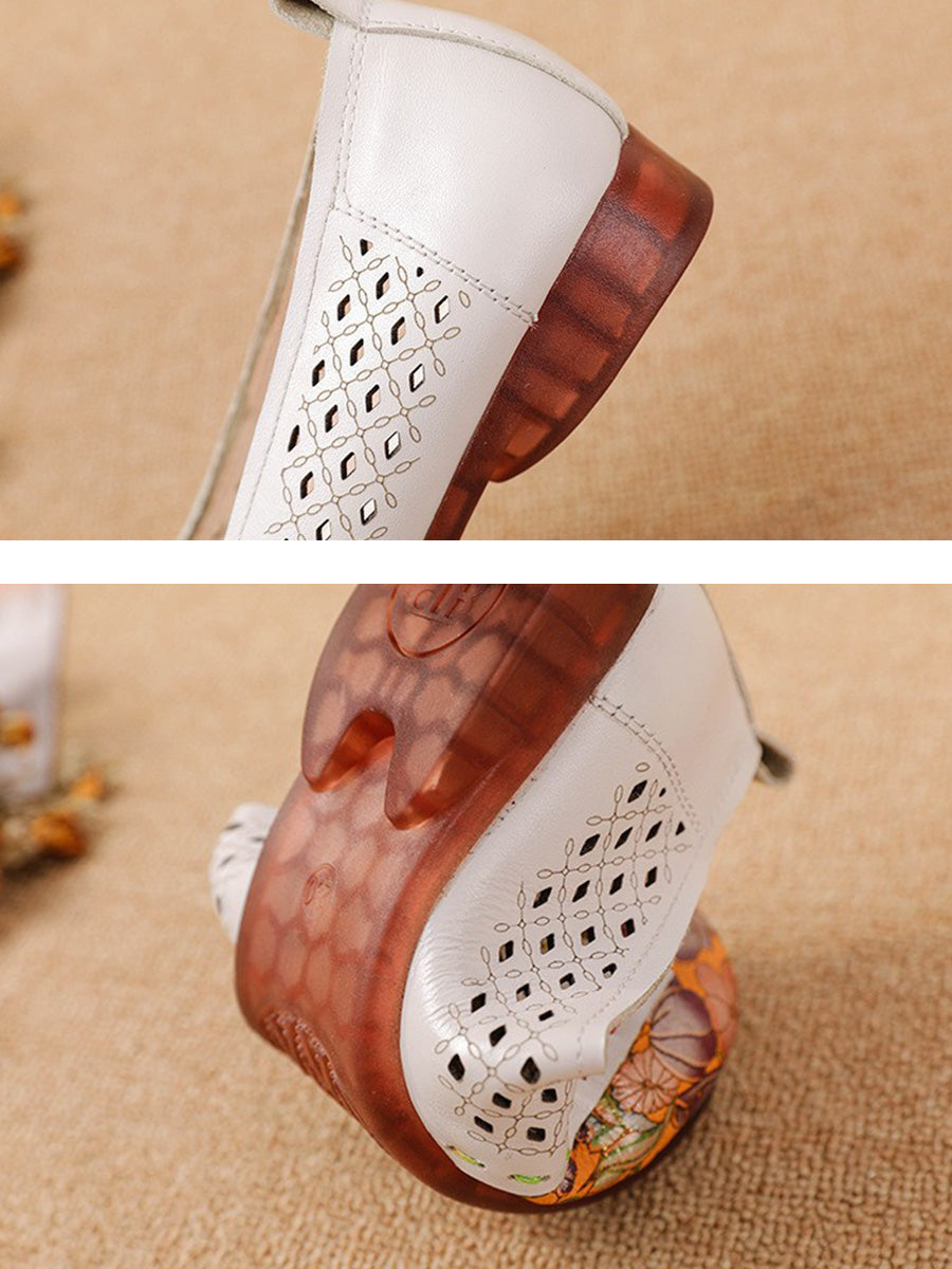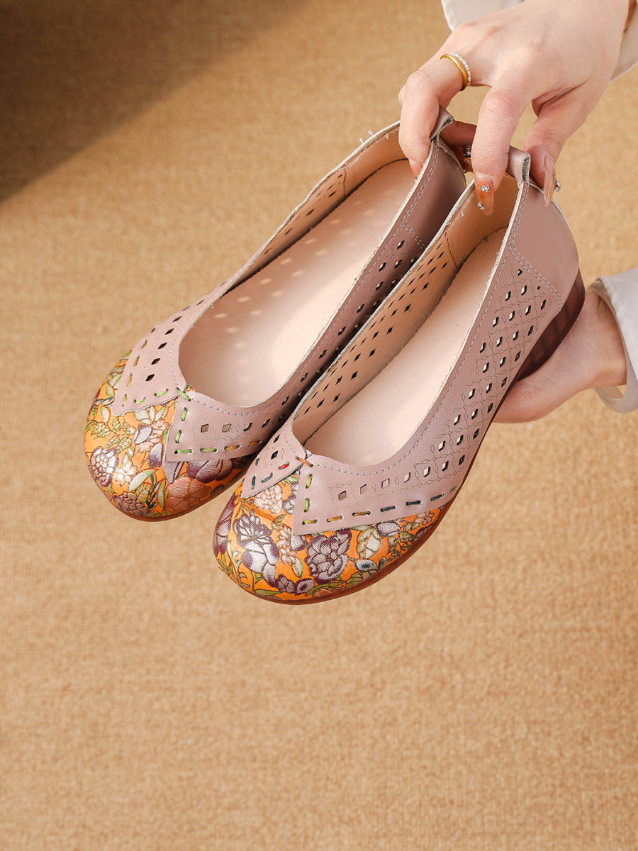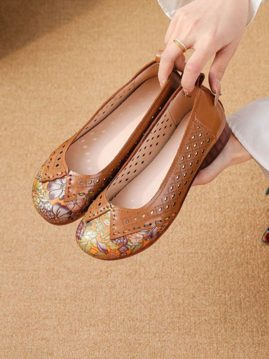 Women Vintage Leather Spliced Low Heel Shoes