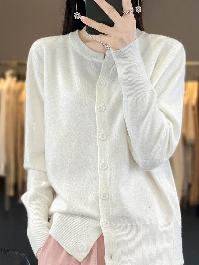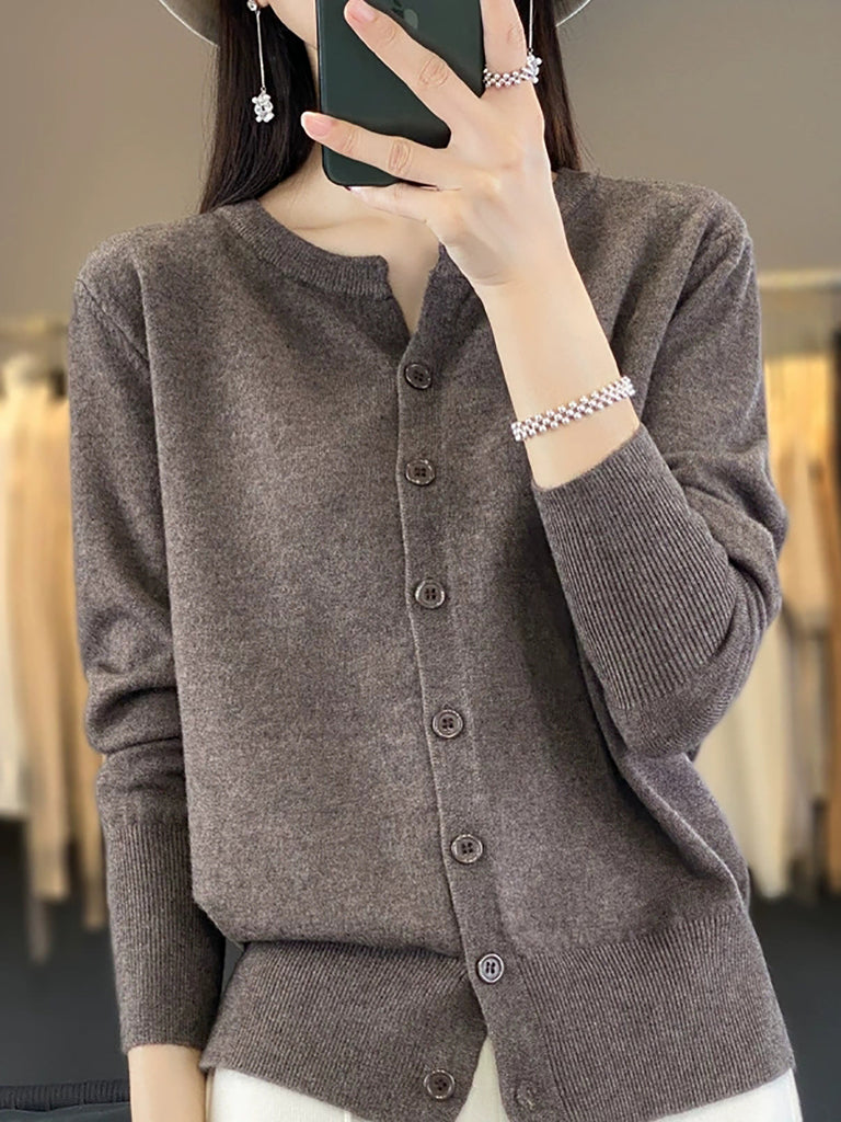 Women Winter Casual Pure Color Knitted Wool O-Neck Sweater