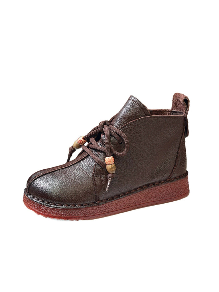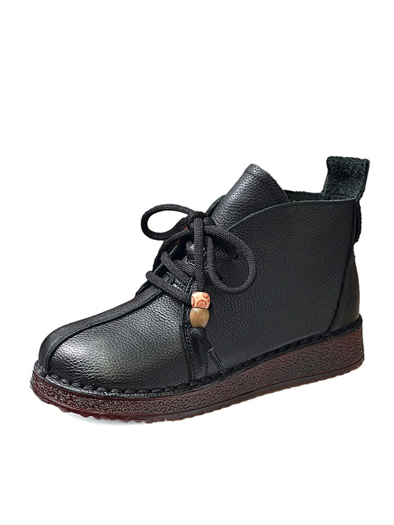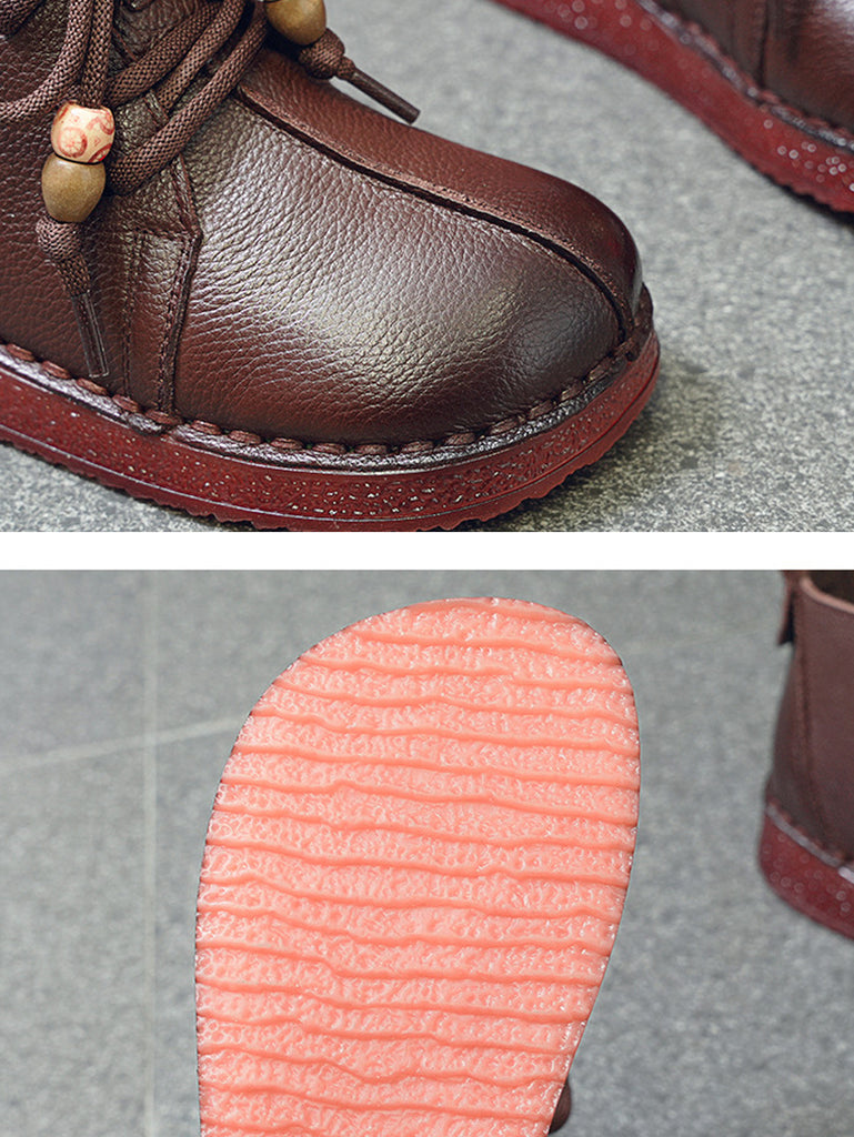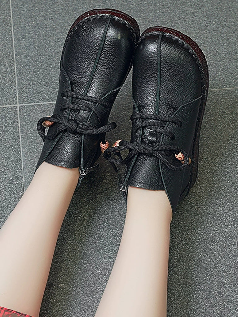 Women Vintage Genuine Leather Spliced Low Heel Boots
