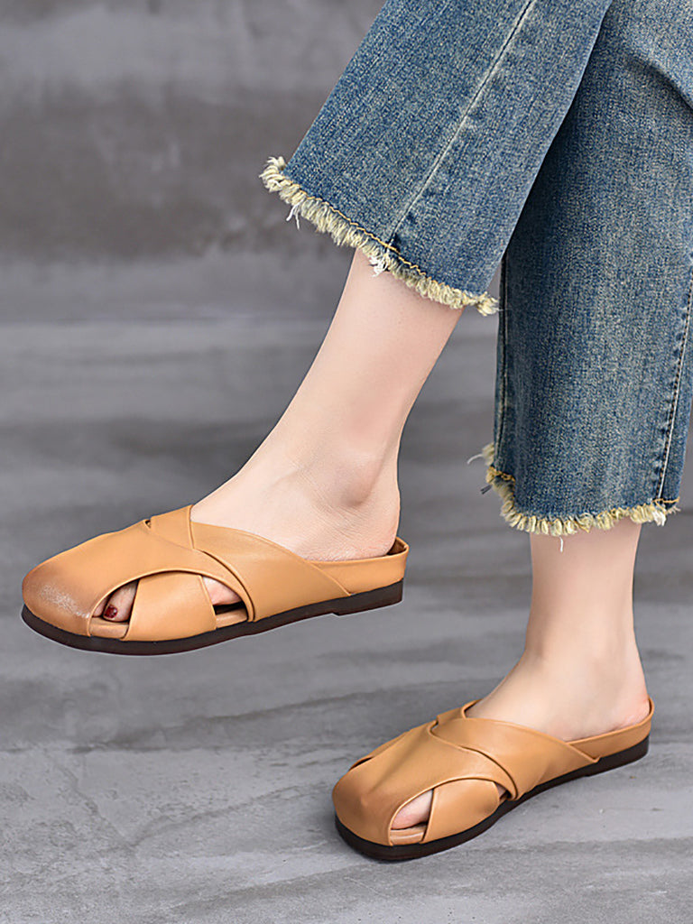 Women Autumn Artsy Pure Color Knitted O-Neck Sweater