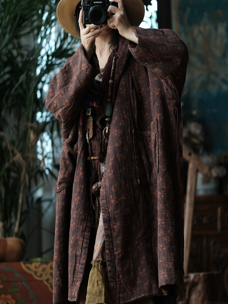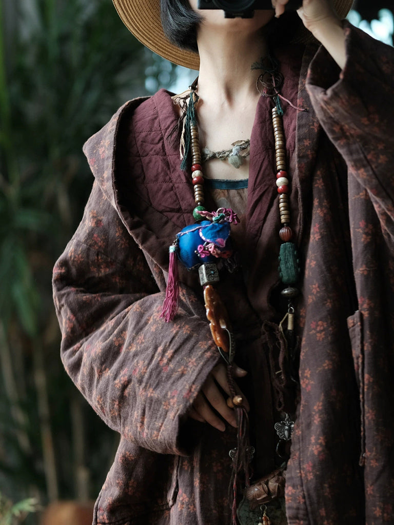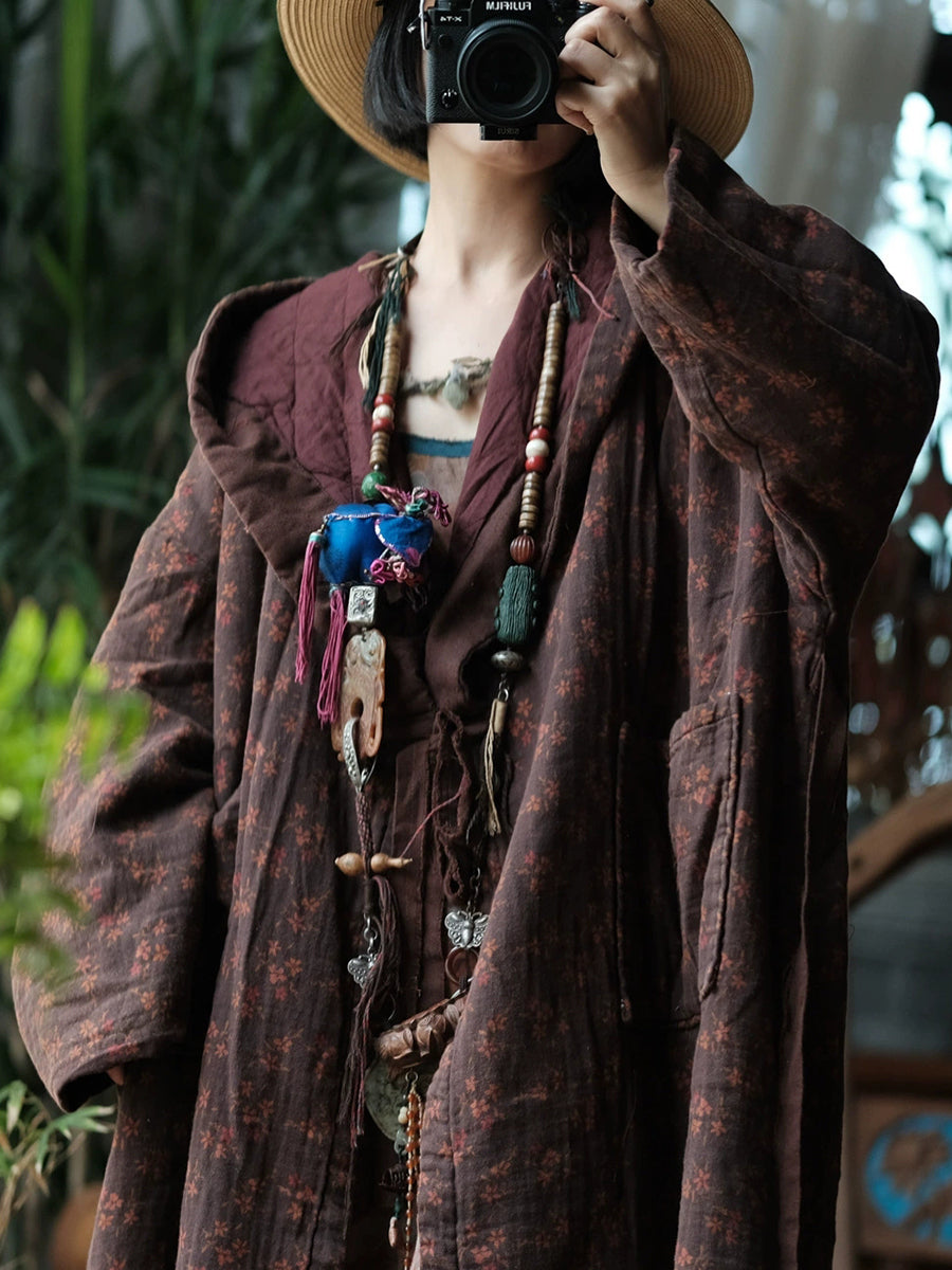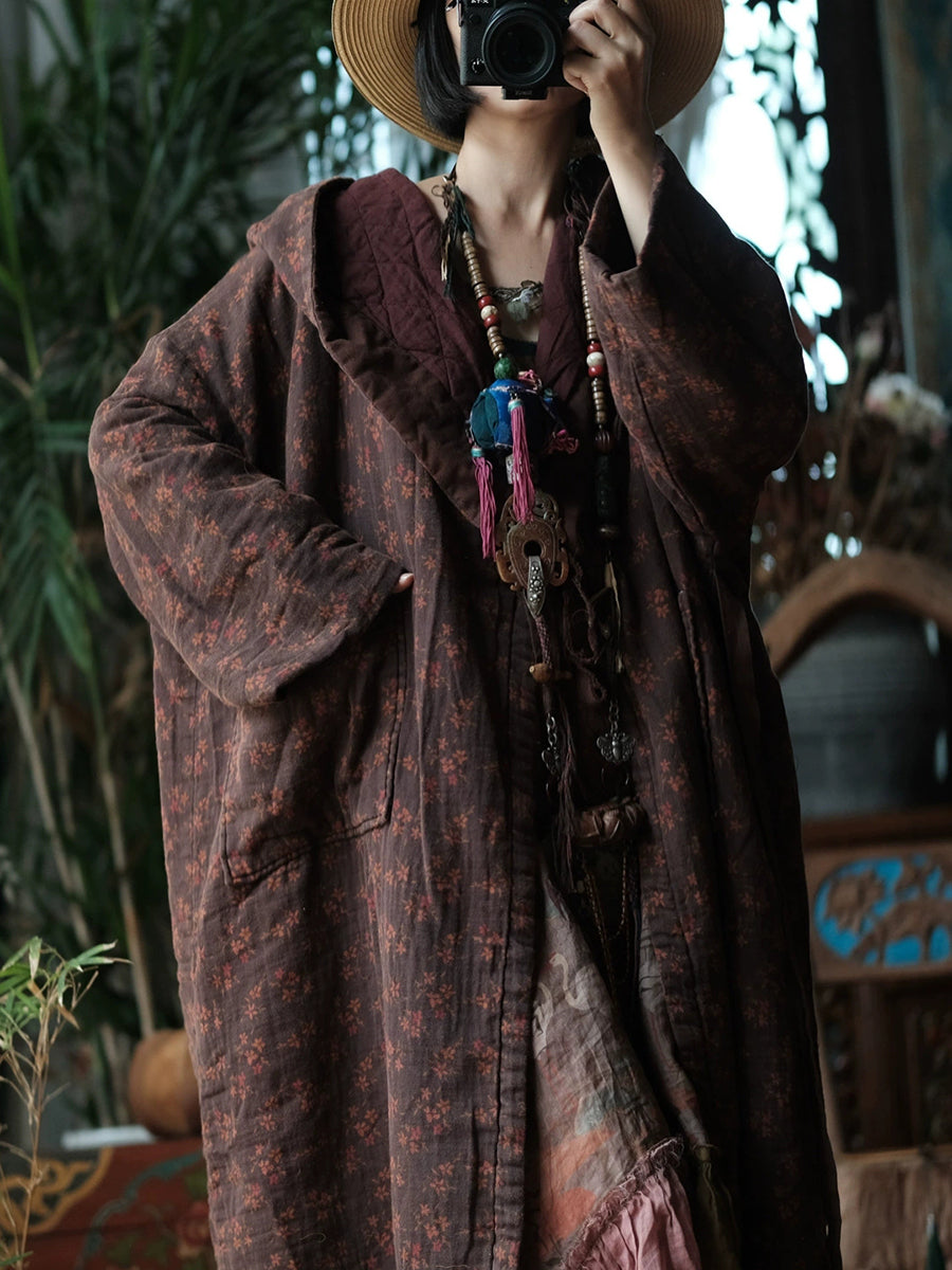 Women Vintage Winter Flower Cotton Hooded Padded Coat
