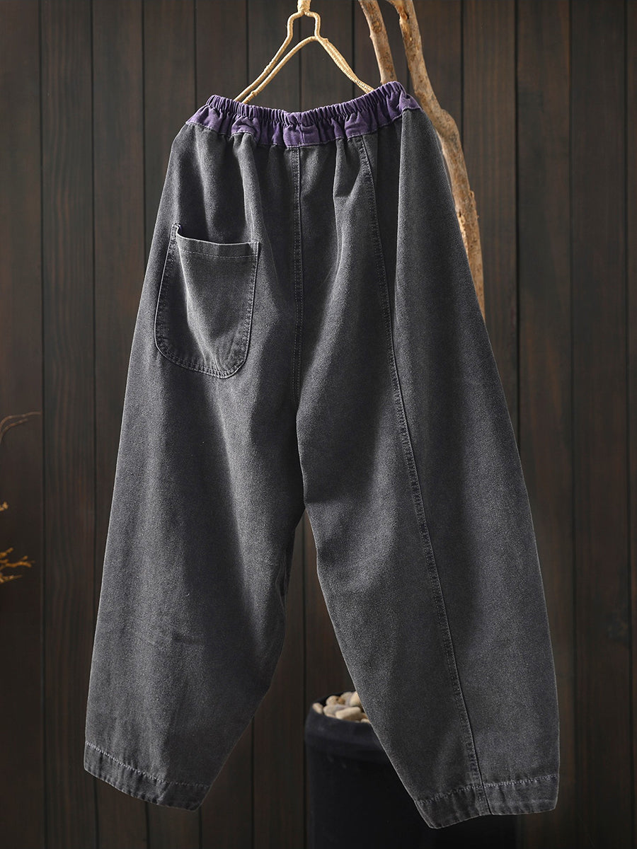 Women Spring Vintage Denim Spliced Harem Pants