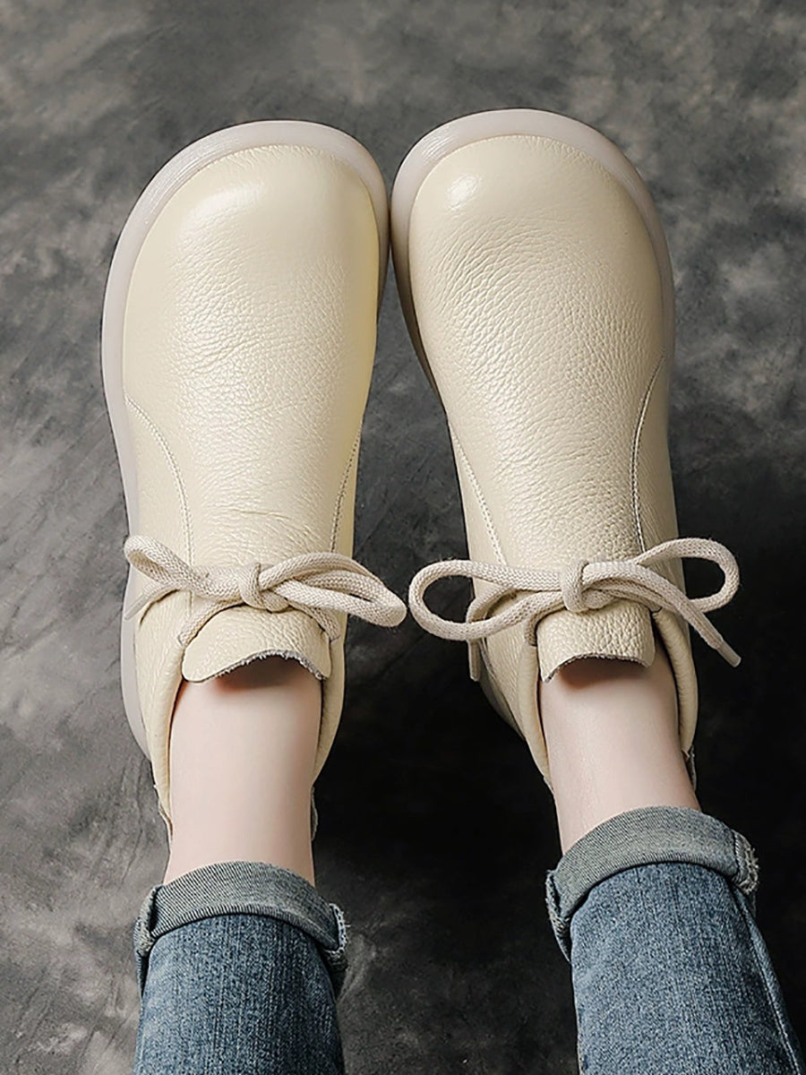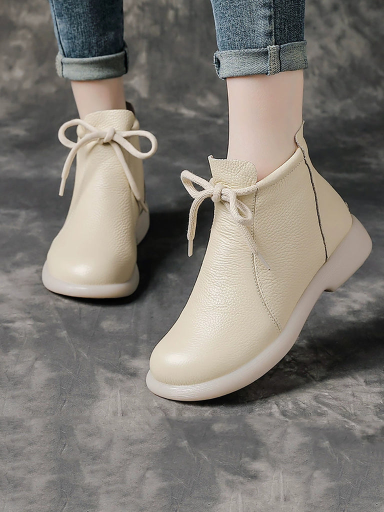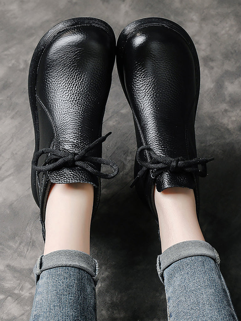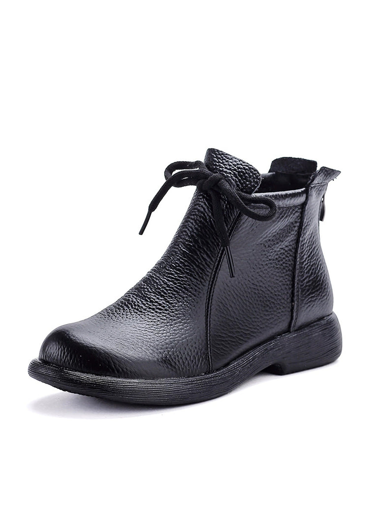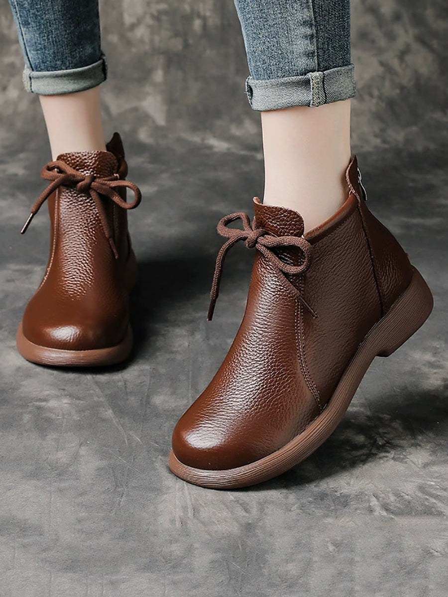 Women Vintage Genuine Leather Low Heel Boots