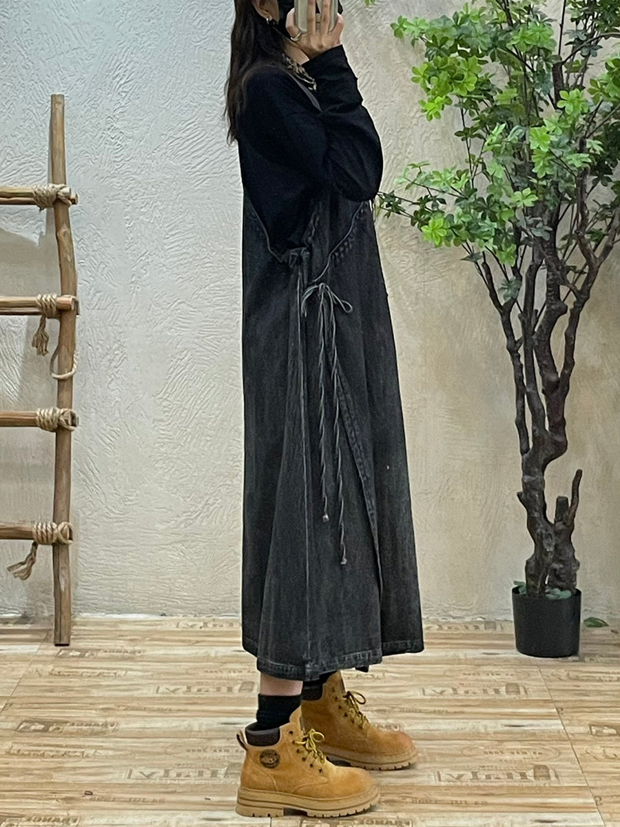 Plus Size Women Autumn Retro Denim Spliced Overall Dress
