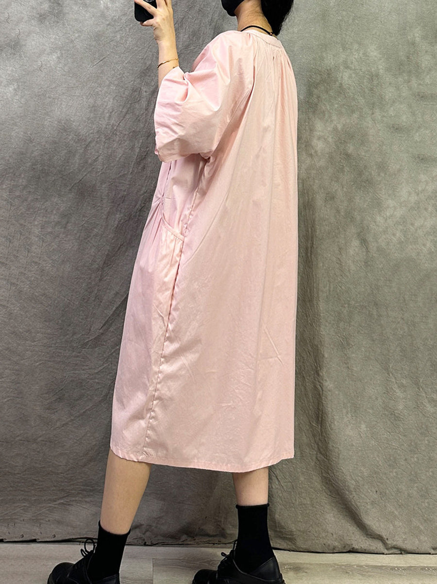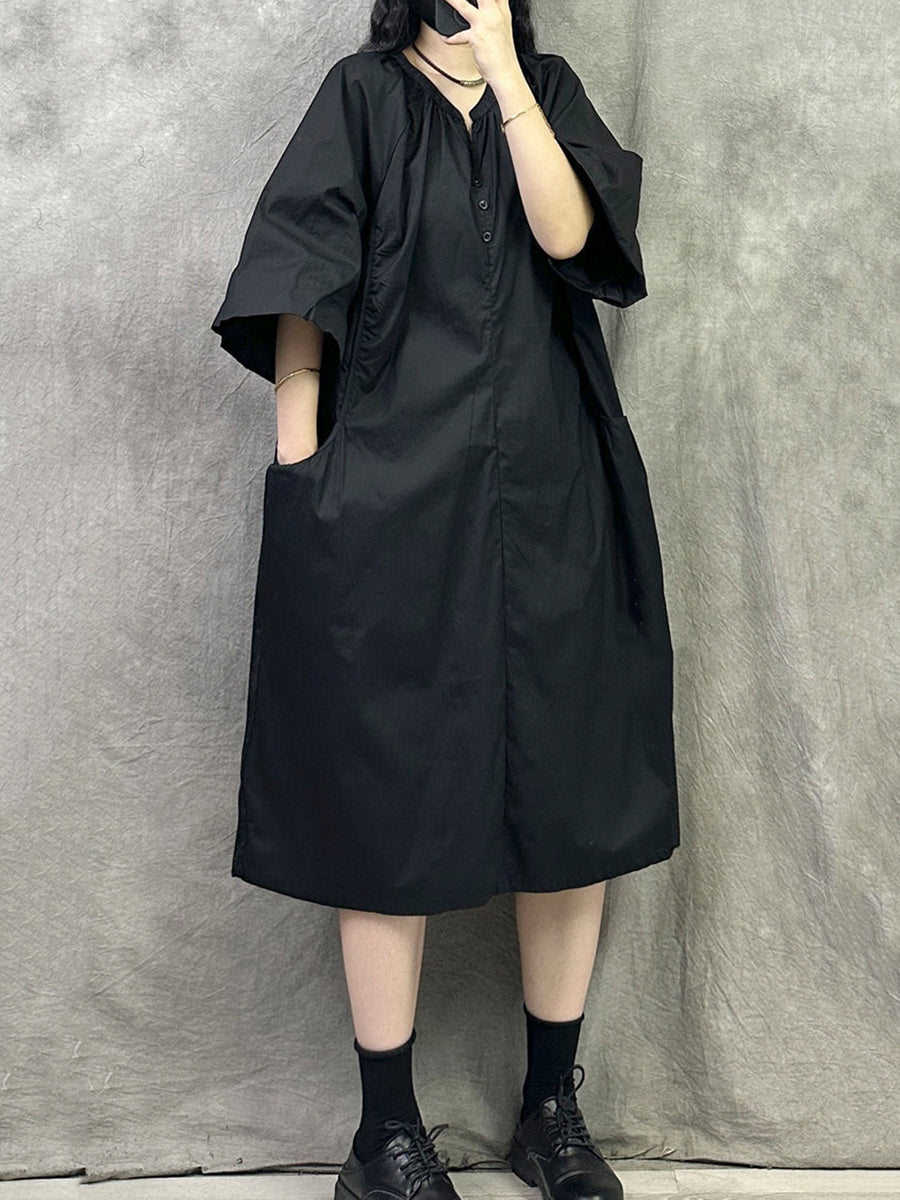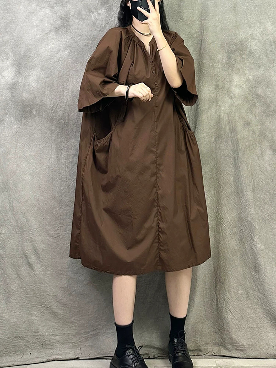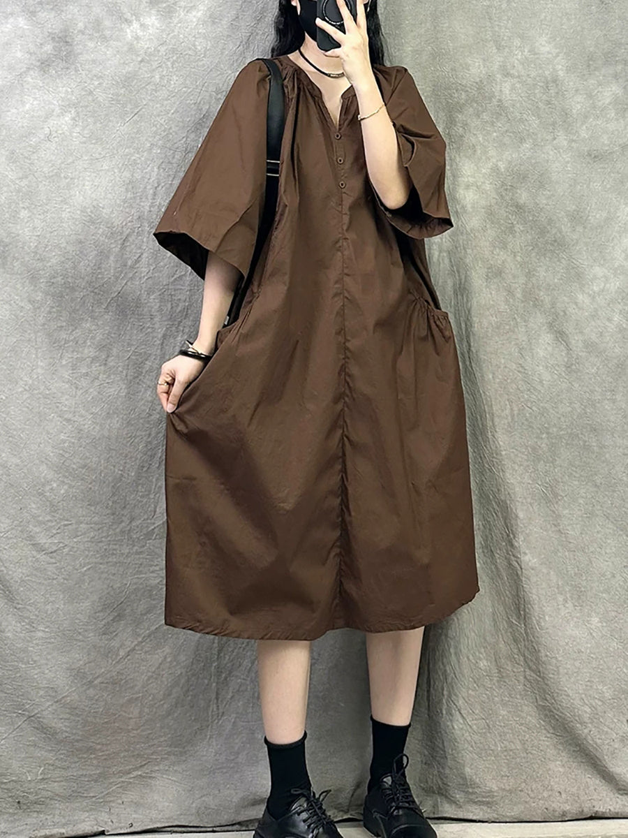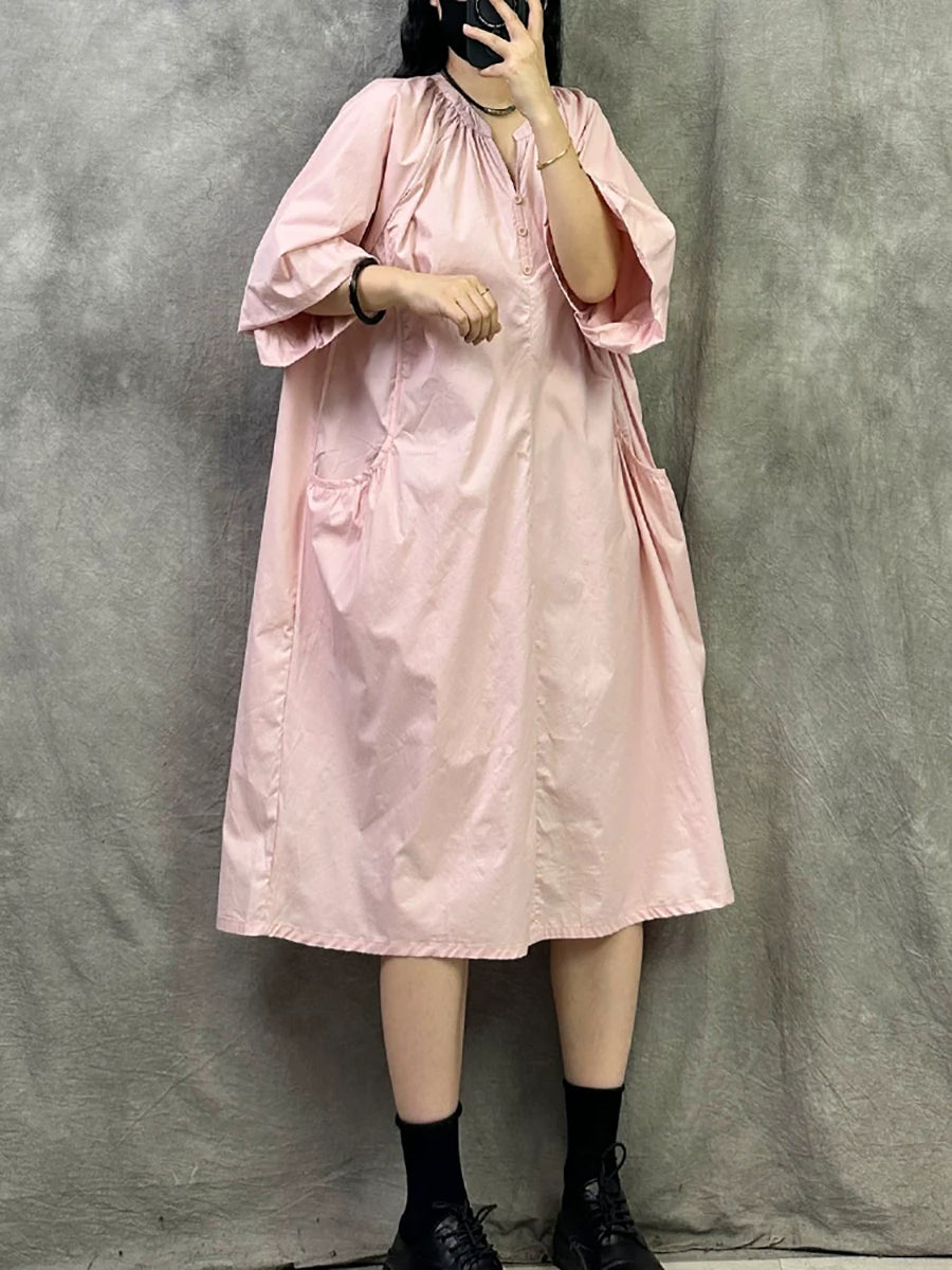 Women Summer Casual Pure Color V-Neck Dress