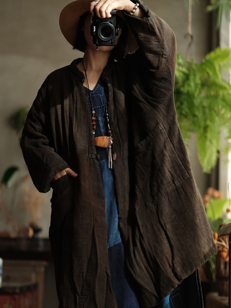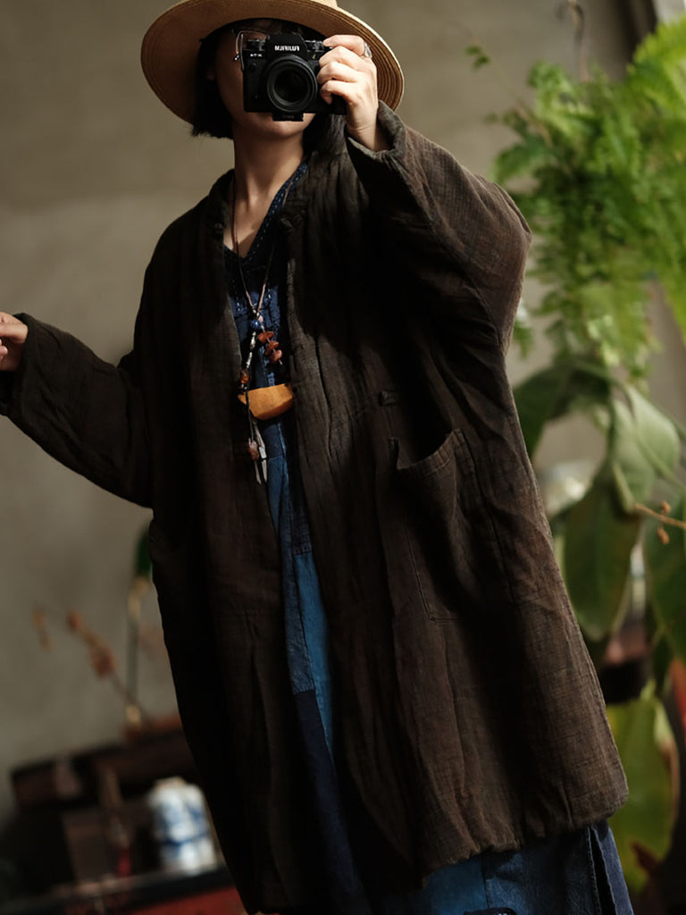 Women Autumn Vintage Pure Color Cotton Hooded Coat