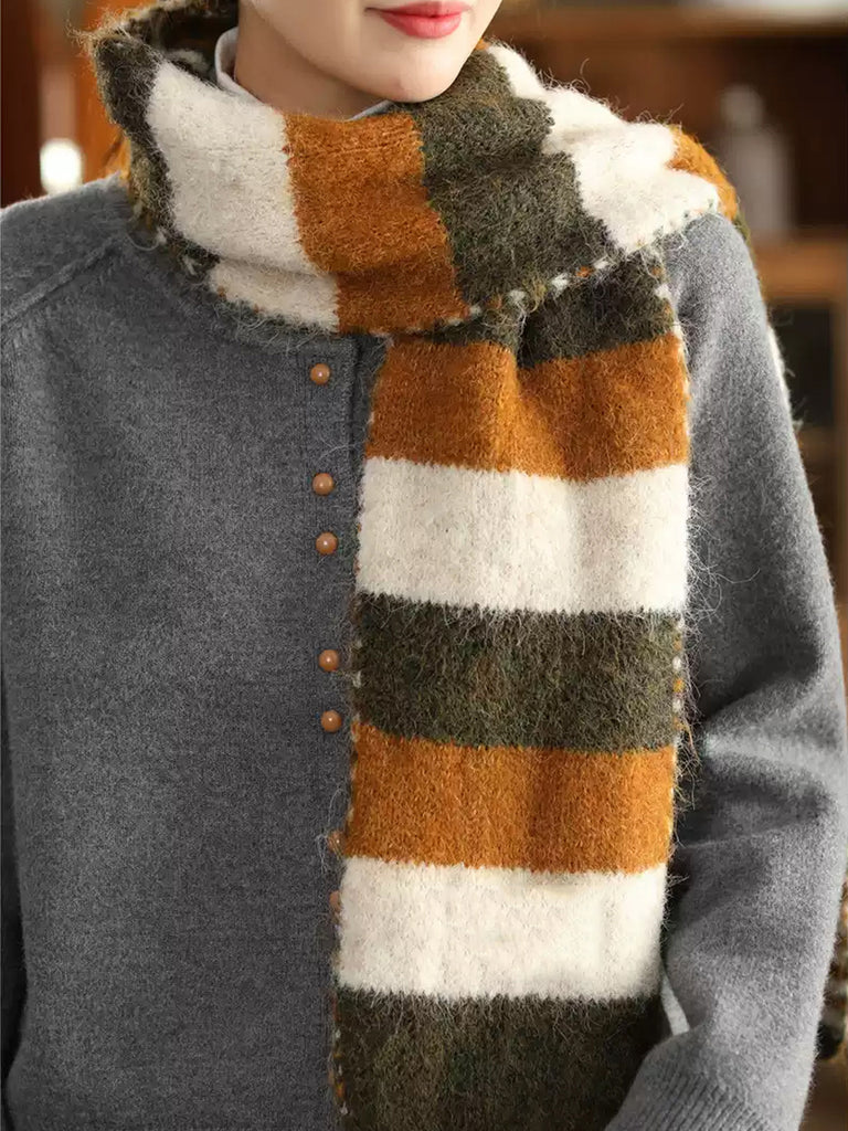 Women Autumn Artsy Colorblock Stand Collar Knit Sweater