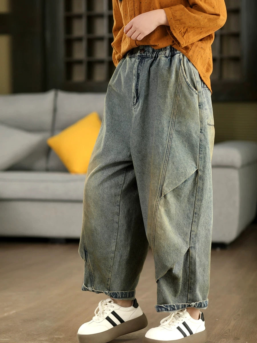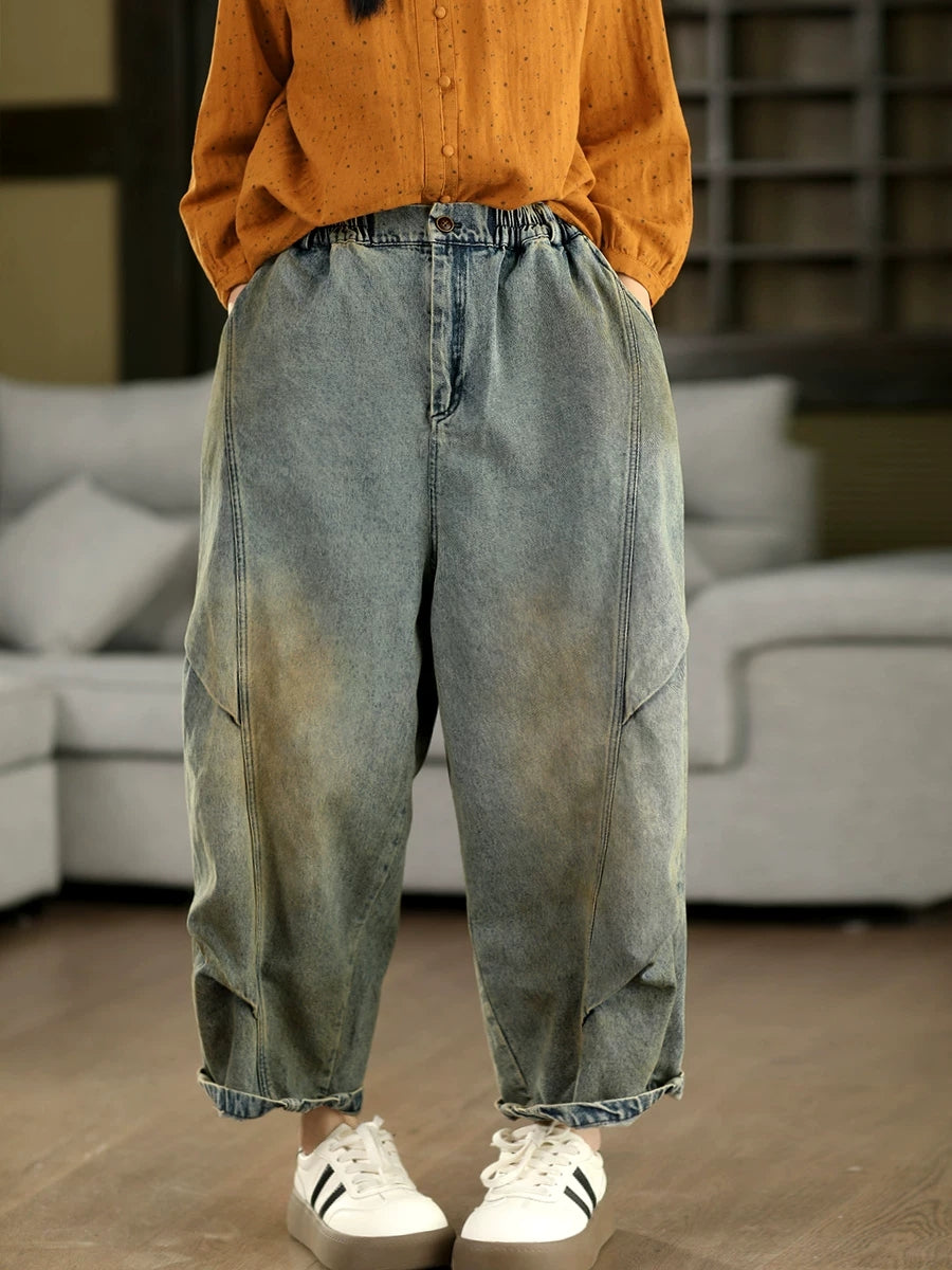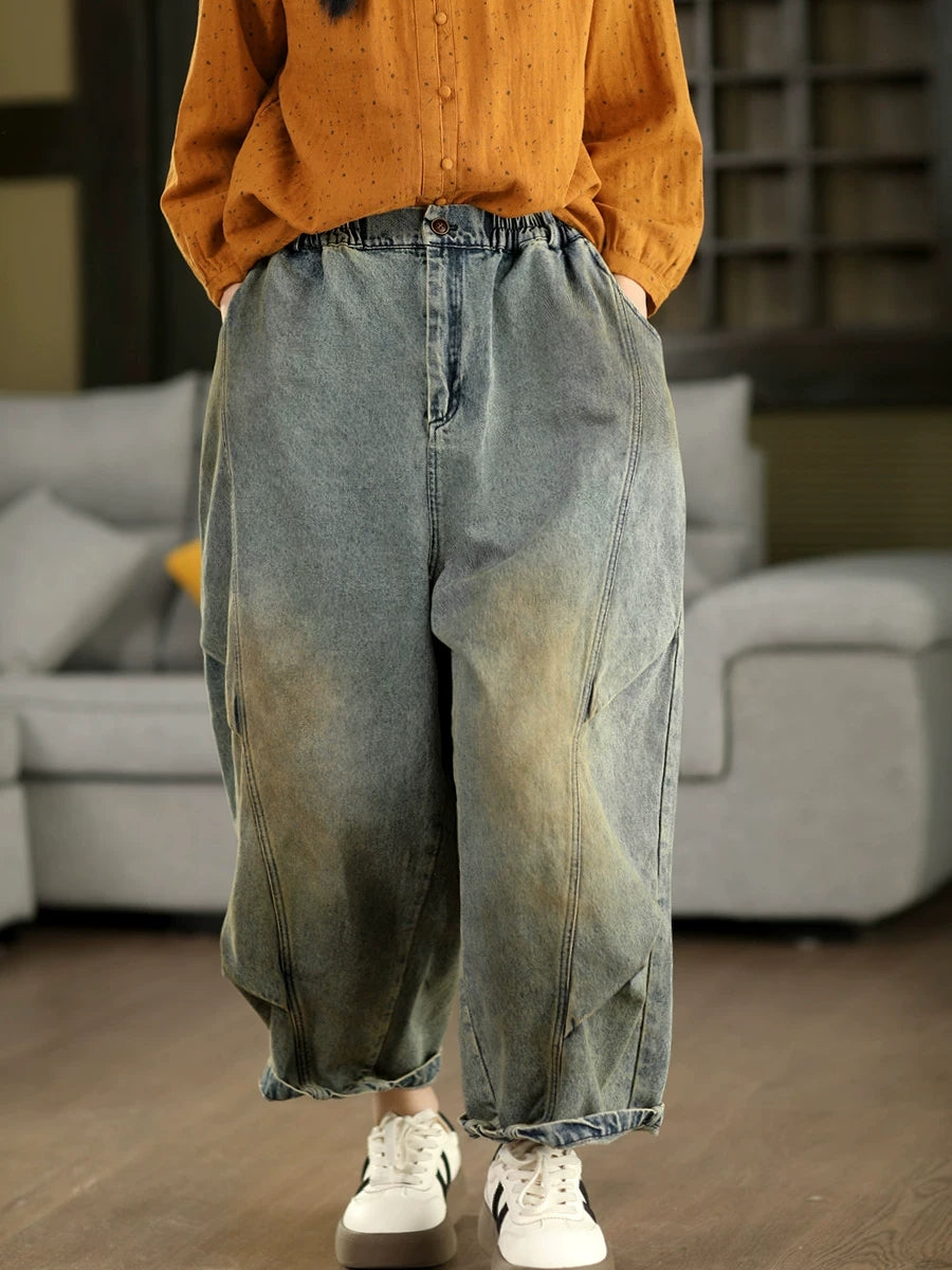 Women Spring Vintage Denim Spliced Harem Pants