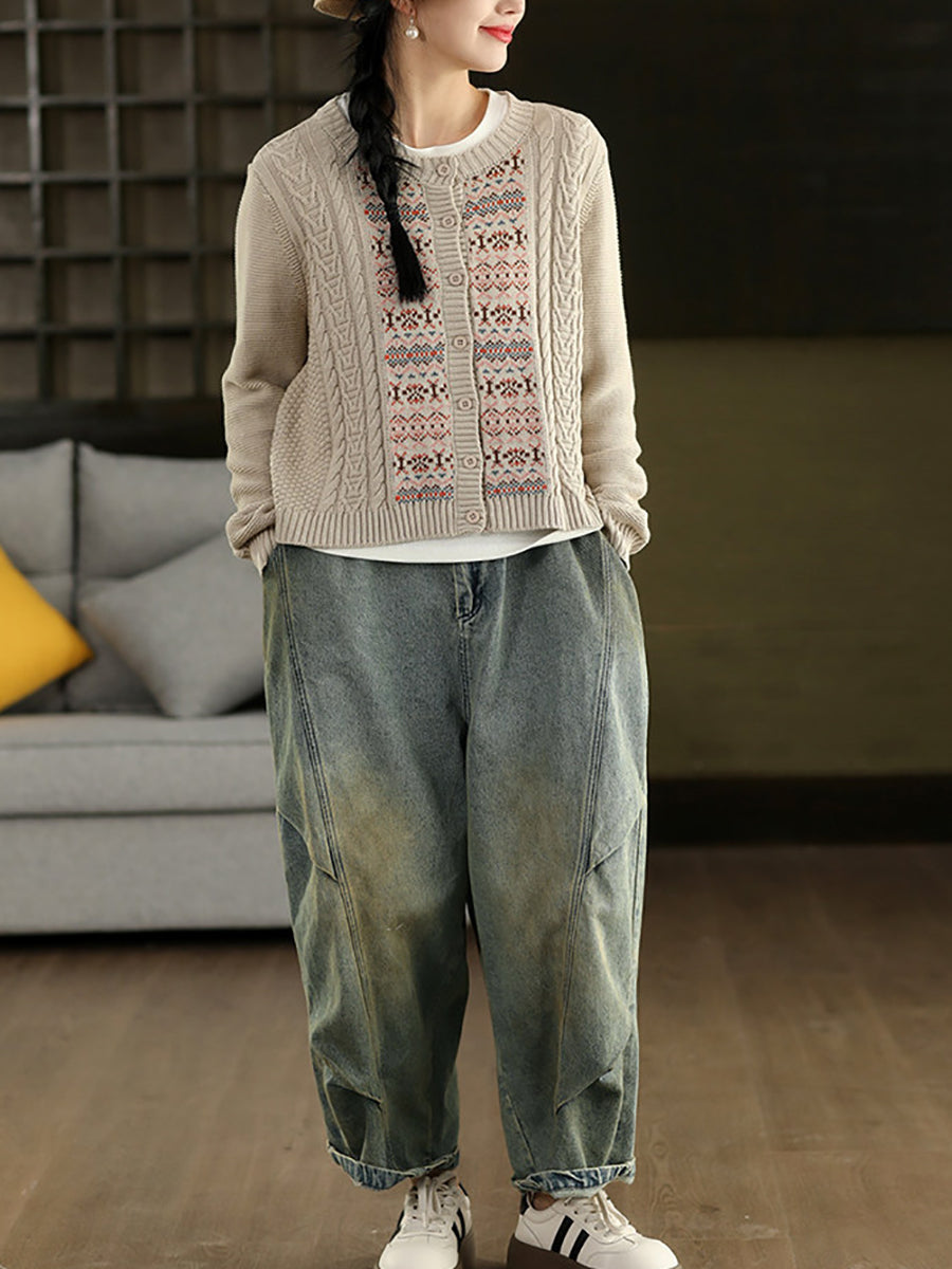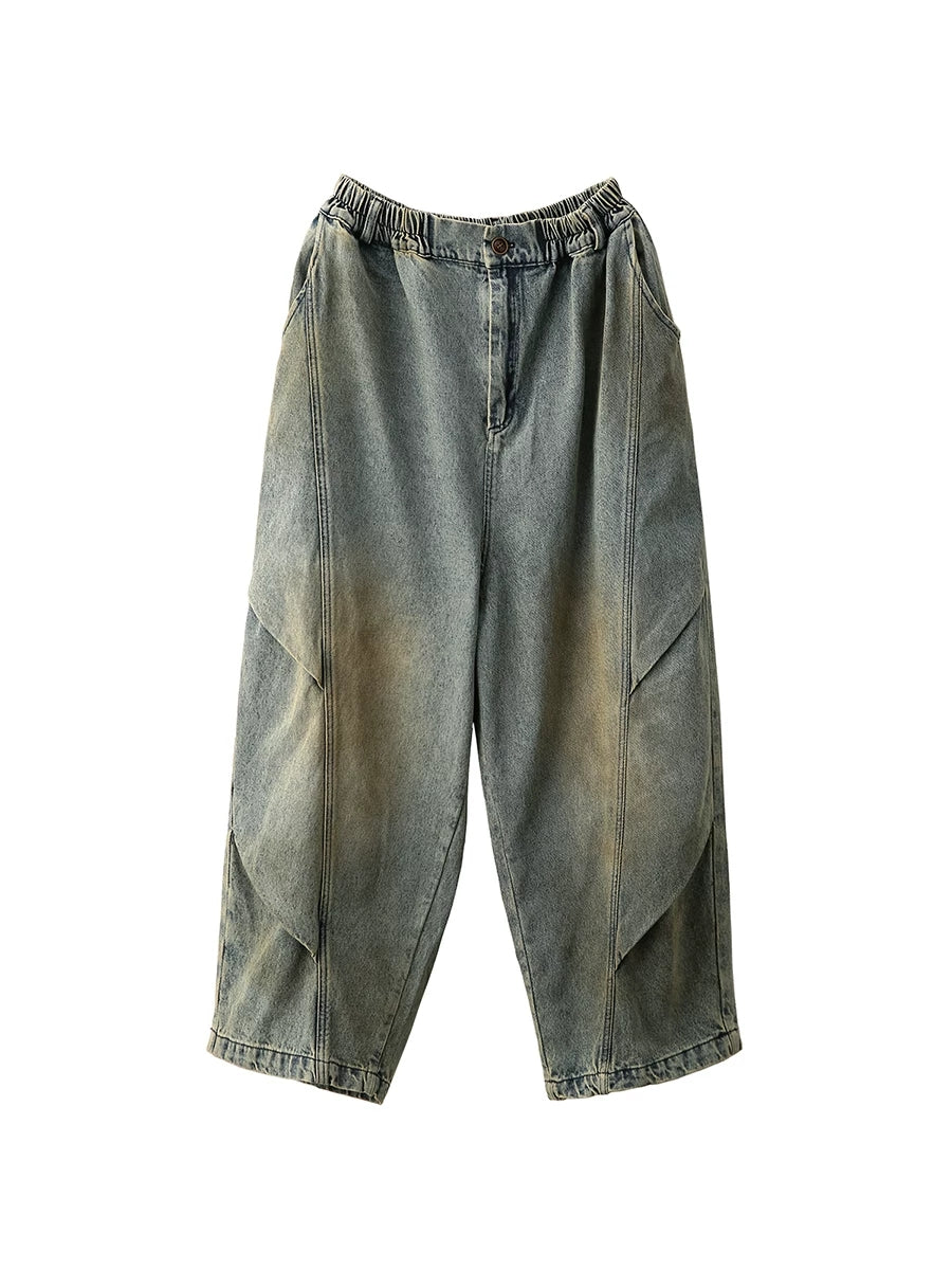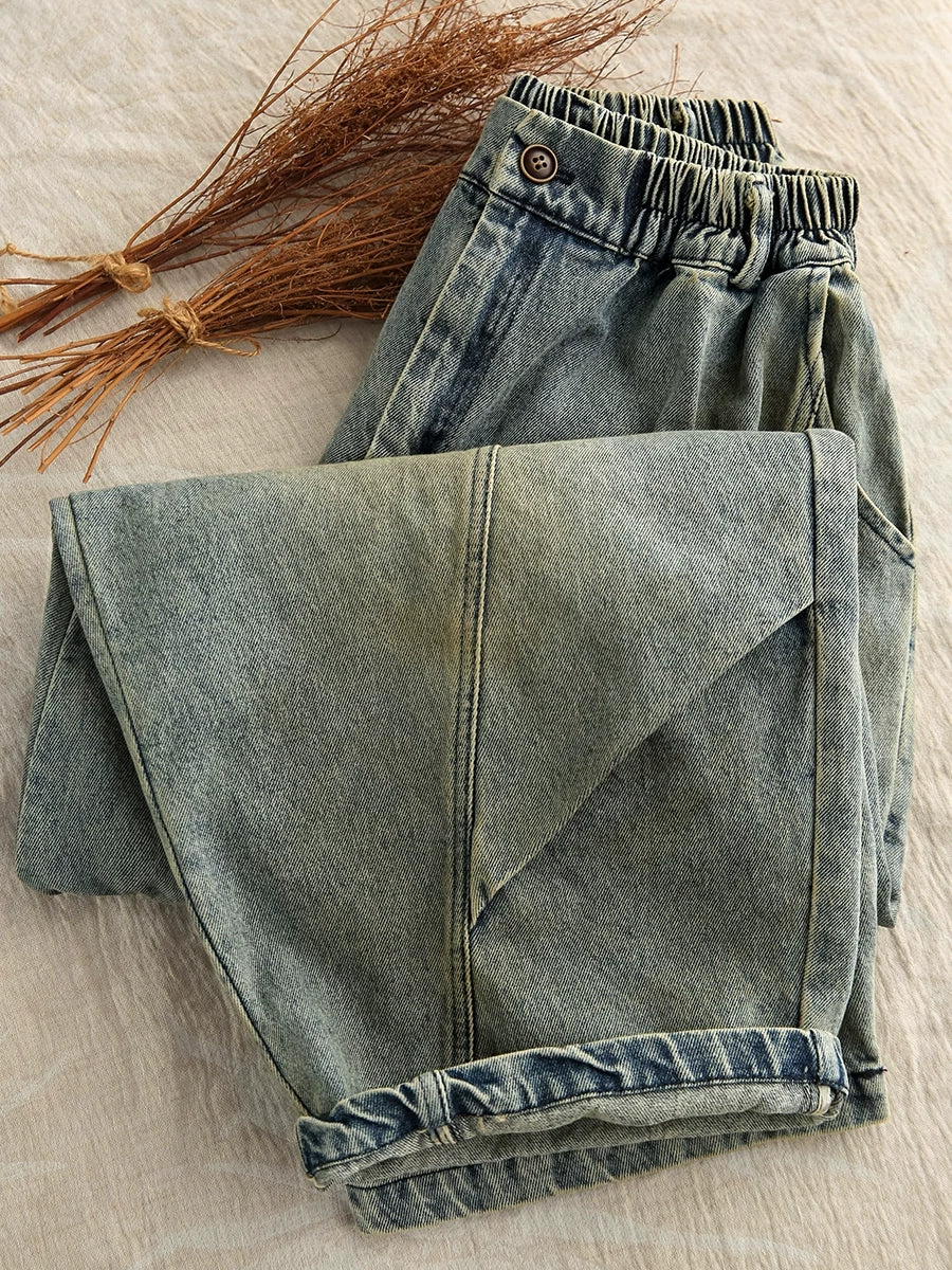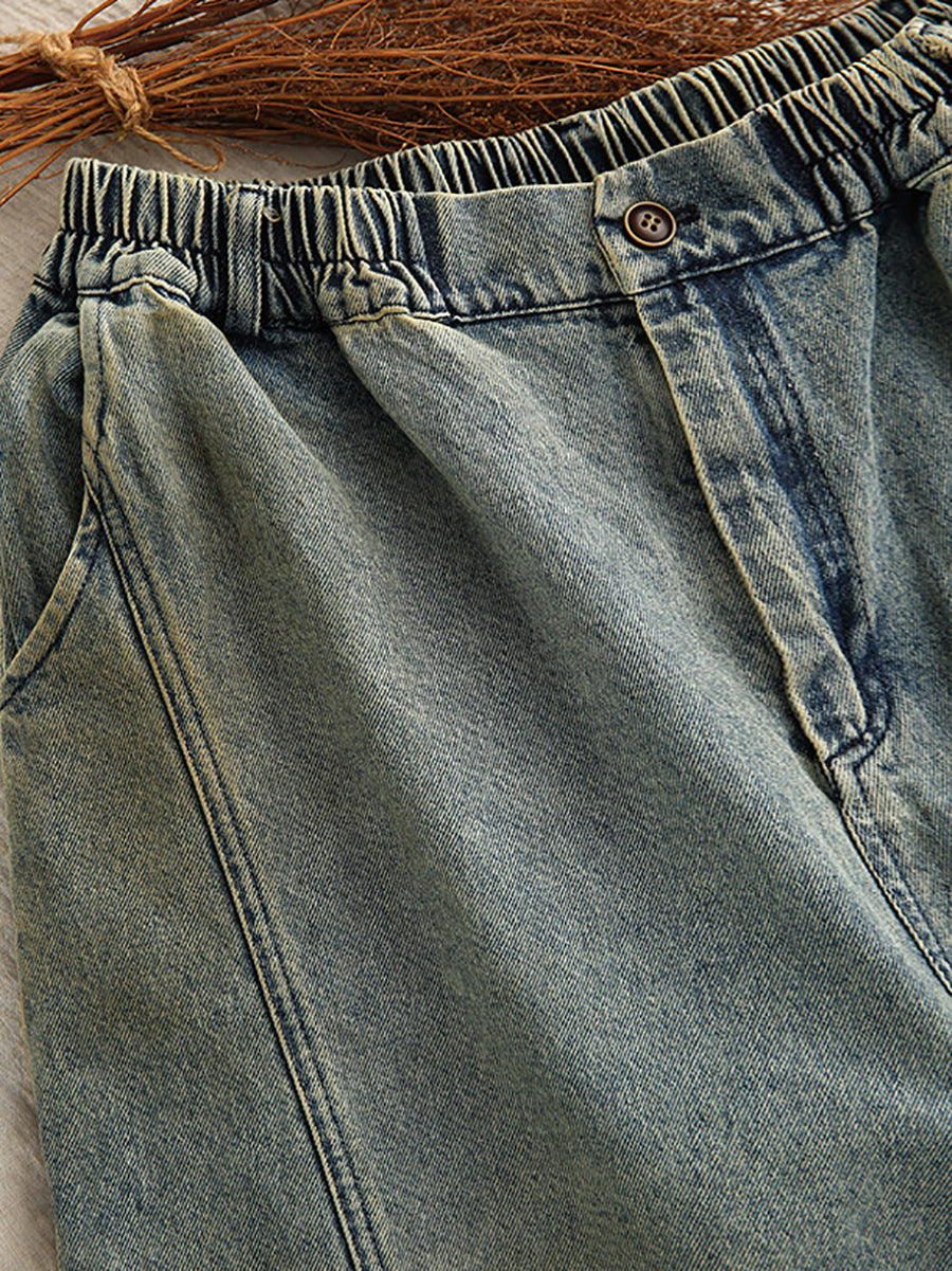 Women Spring Vintage Denim Spliced Harem Pants