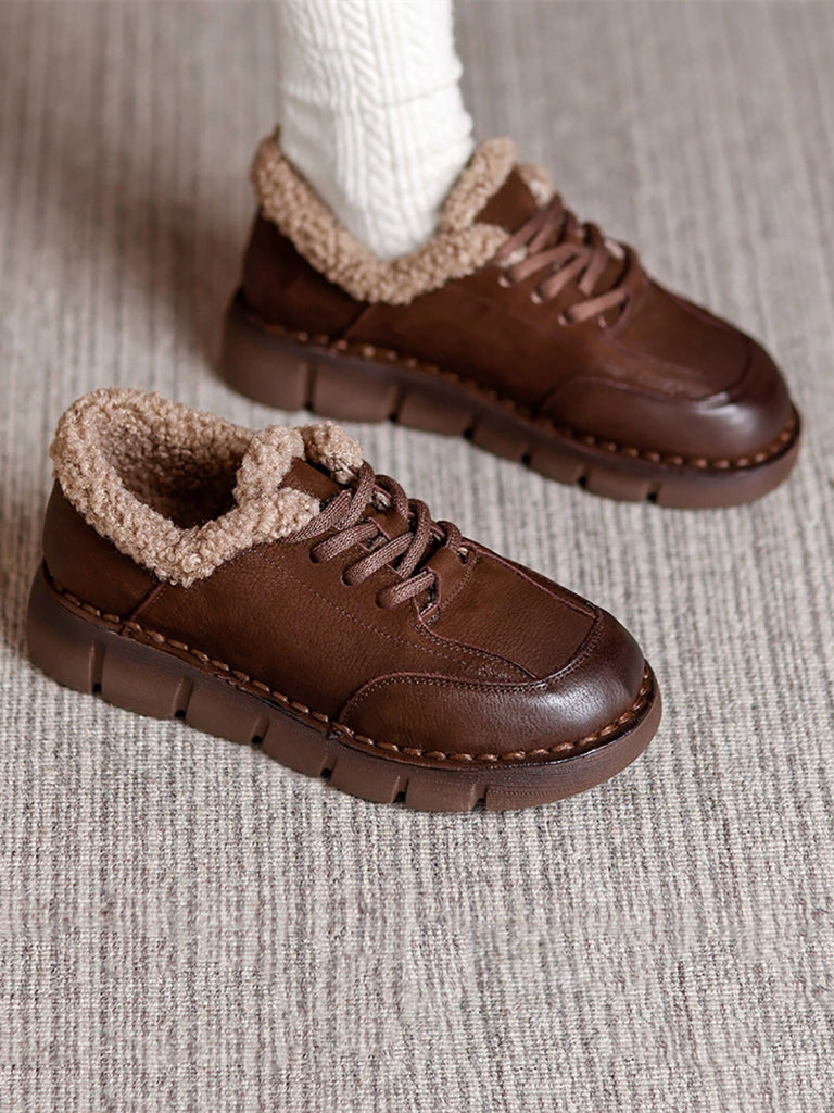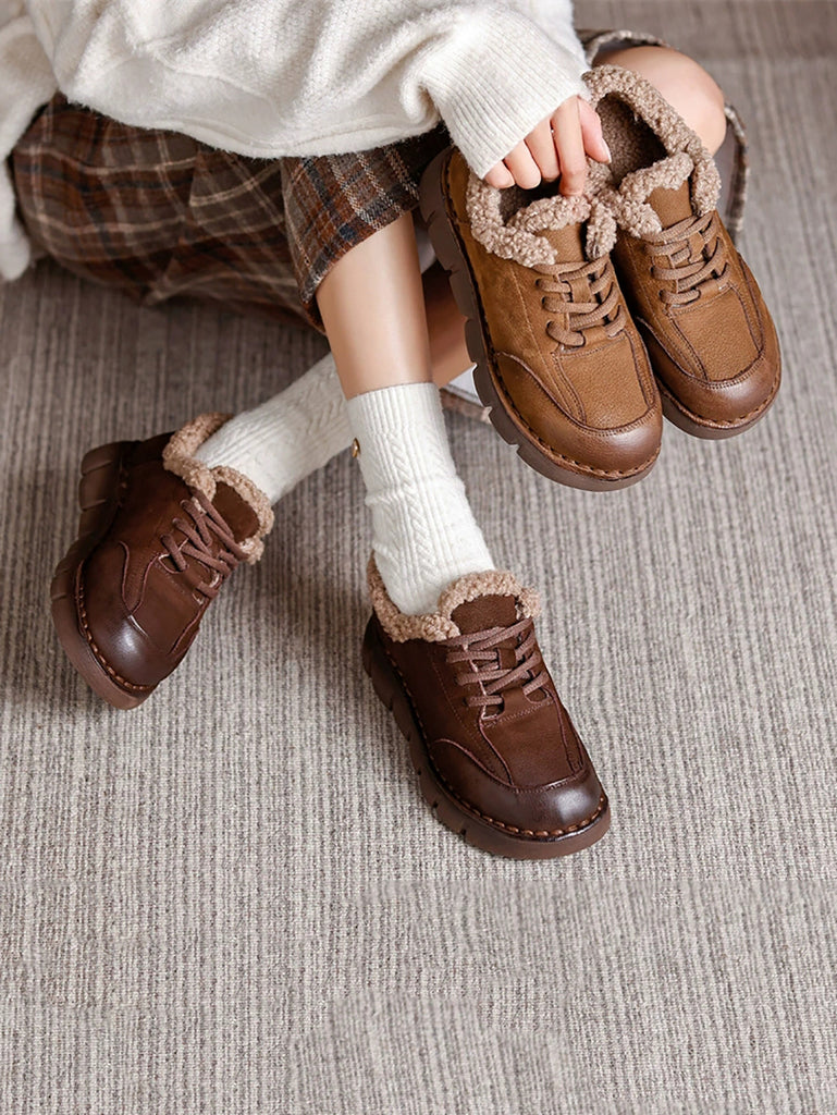 Women Winter Genuine Leather Fleece-lined Platform Shoes