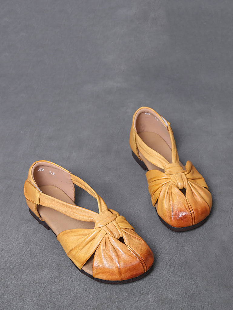 Women Summer Vintage Genuine Leather Spliced Sandals