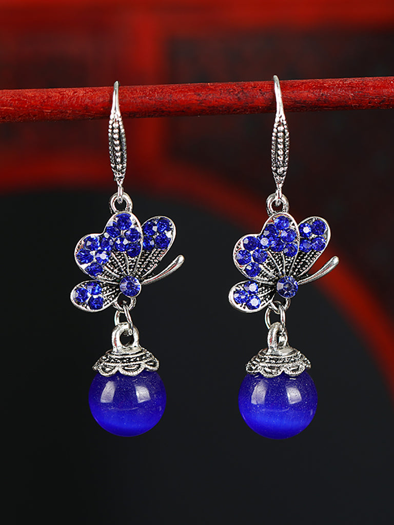 Women Vintage Butterfly Agate Alloy Earrings
