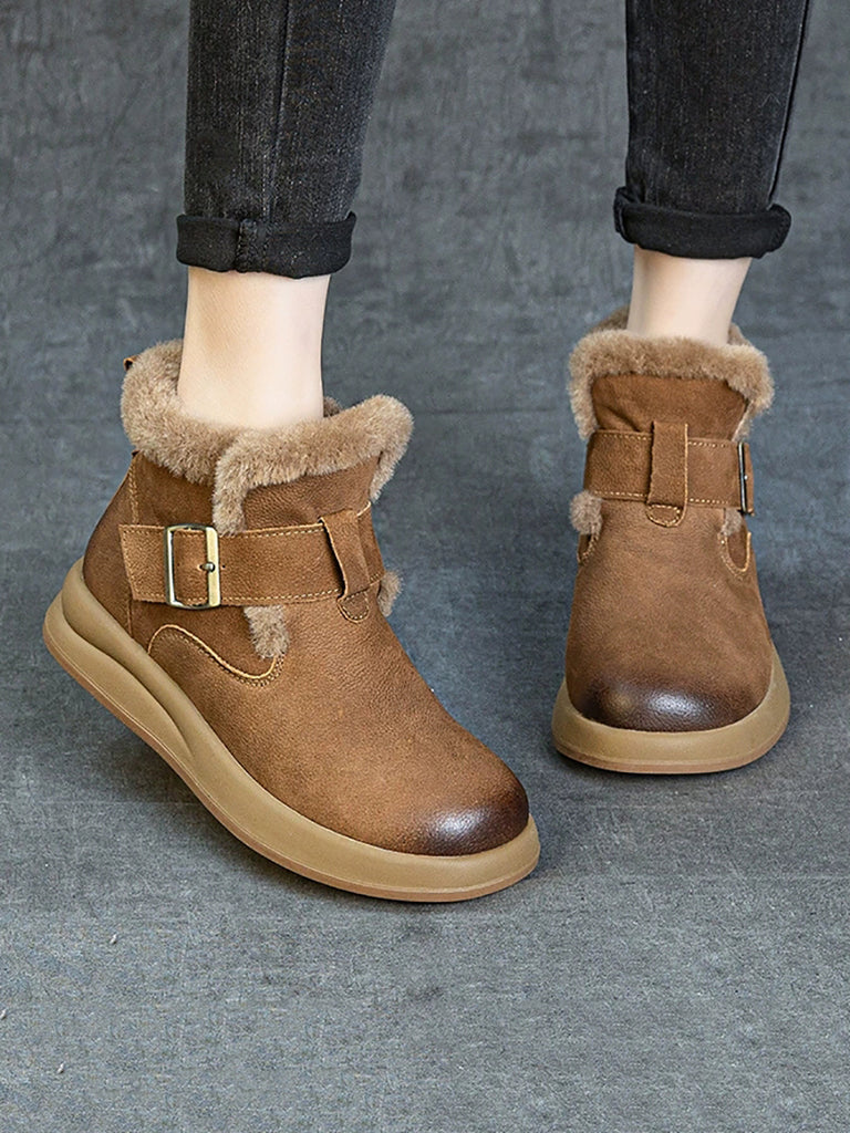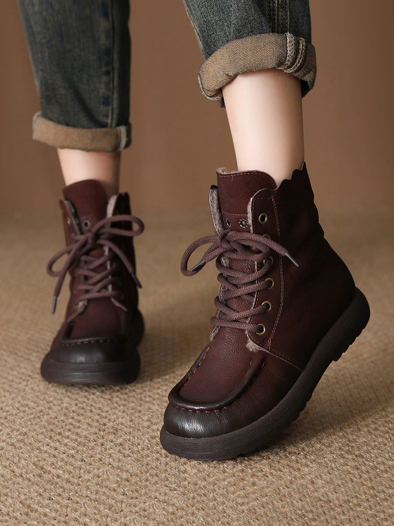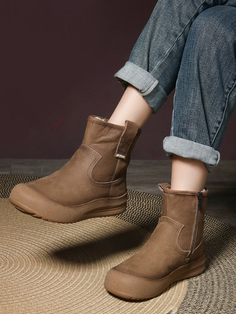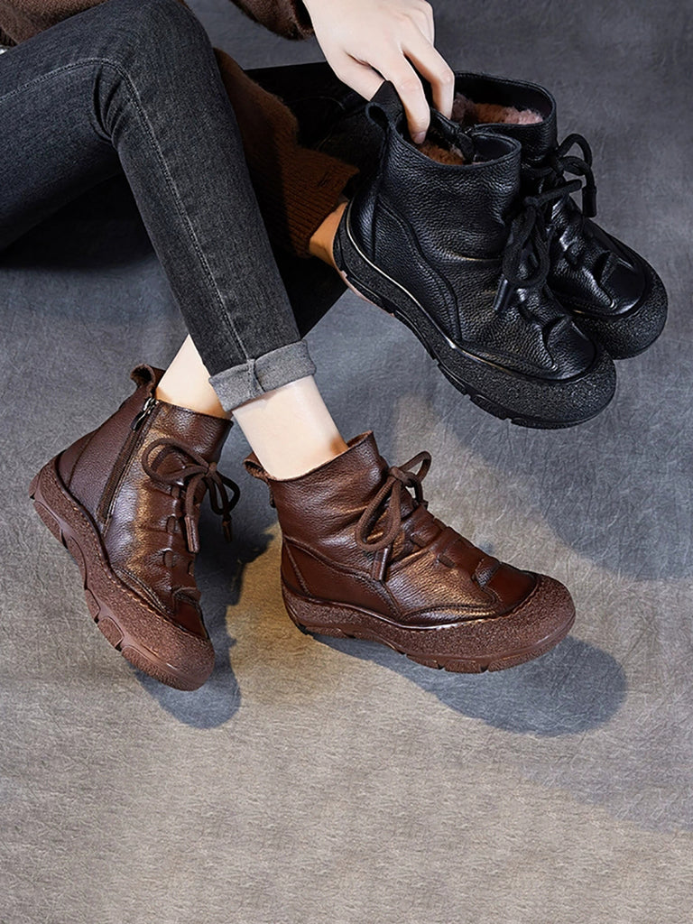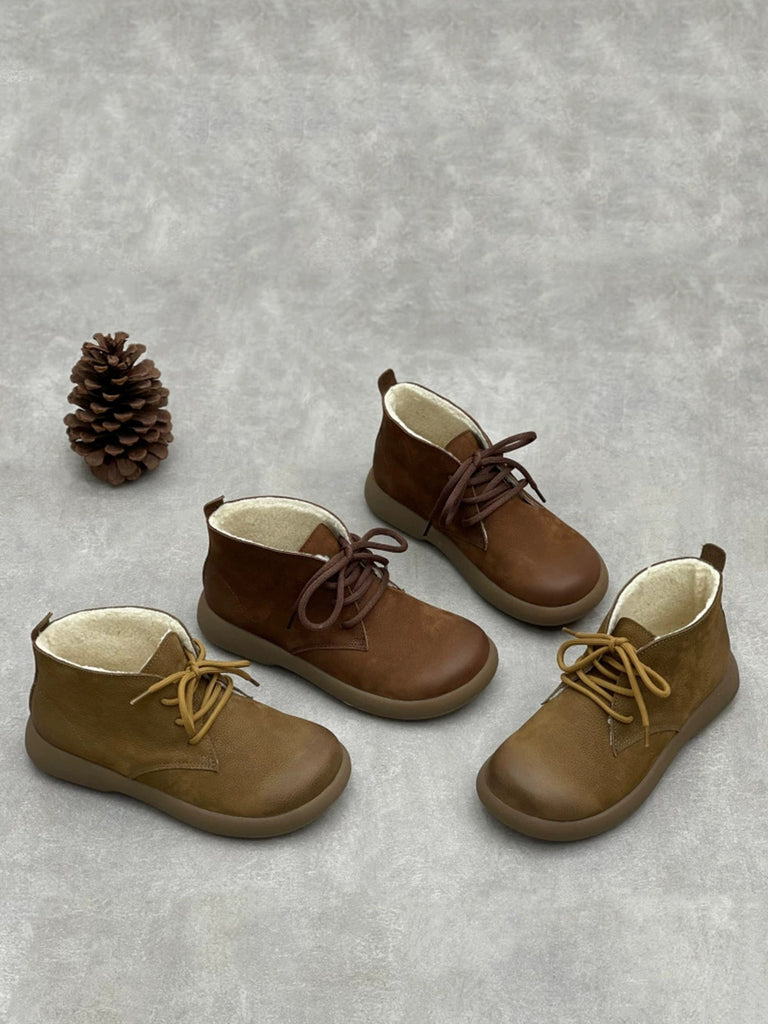 Women Vintage Genuine Leather Fleece-lined Ankle Boots