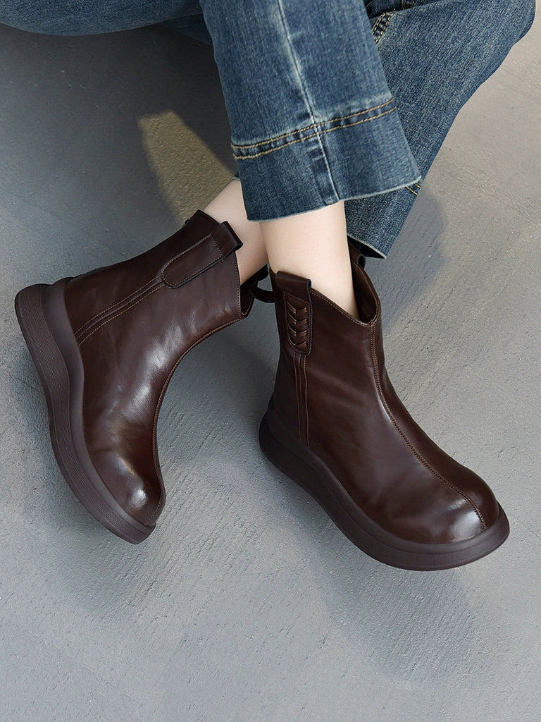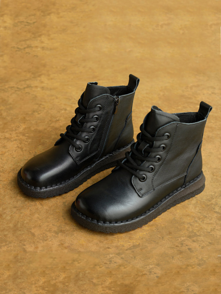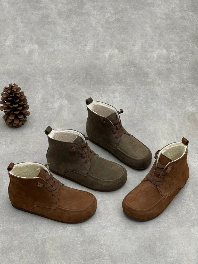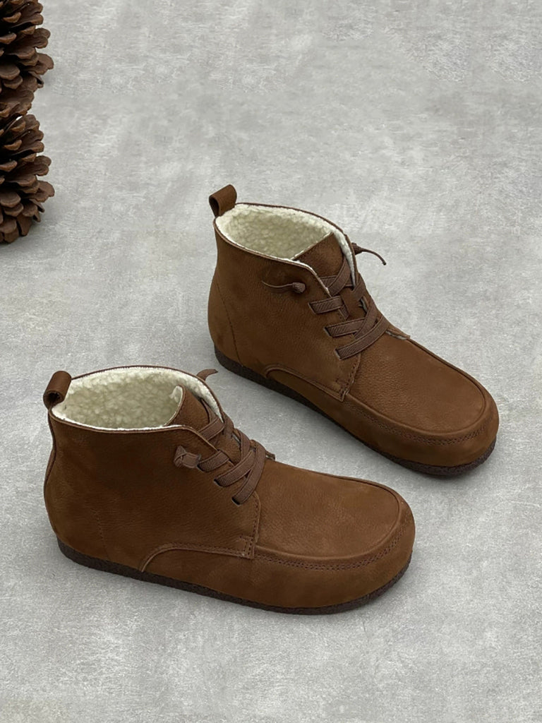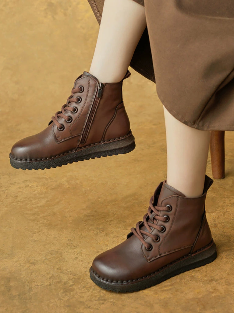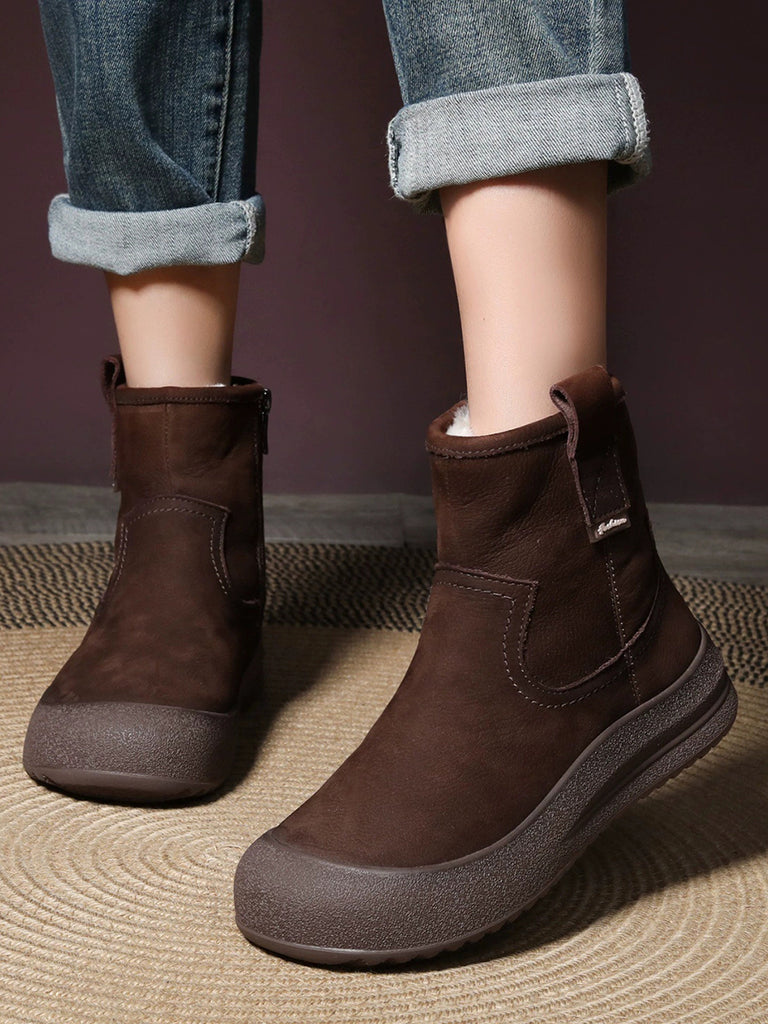 Women Vintage Genuine Leather Fleece-lined Ankle Boots