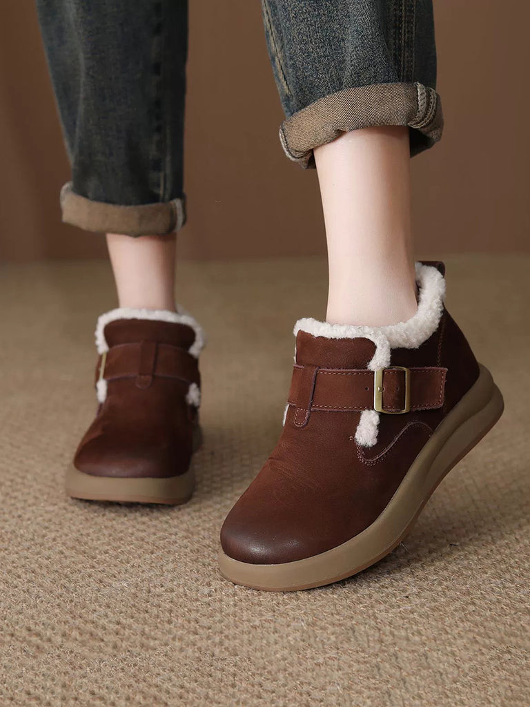 Women Vintage Genuine Leather Fleece-lined Shoes