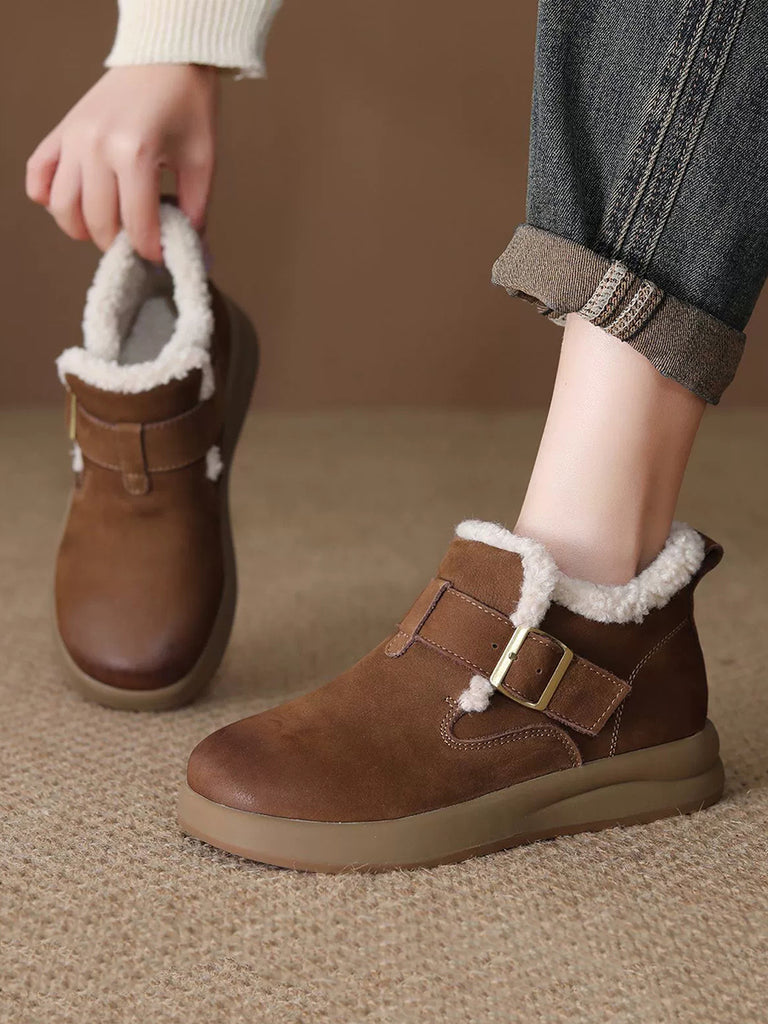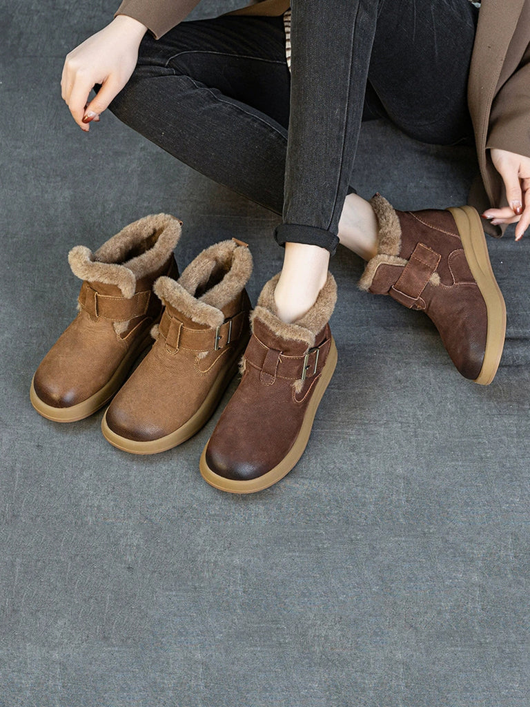 Women Winter Suded Leather Fleece-lined Snow Boots