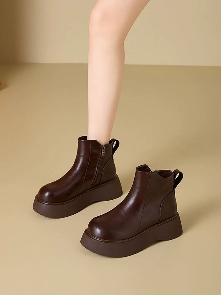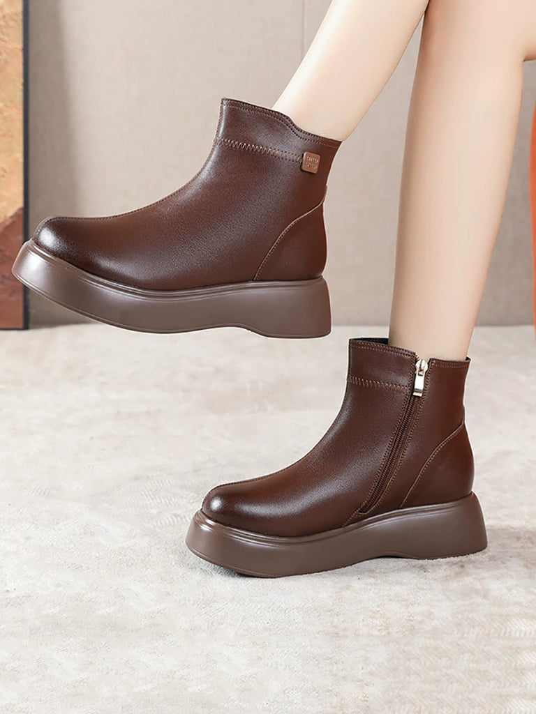 Women Winter Genuine Leather Fleece-lined Platform Boots