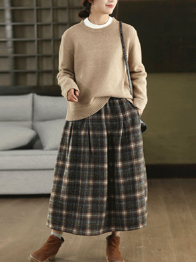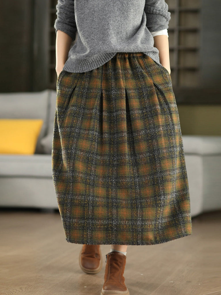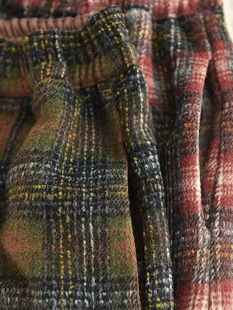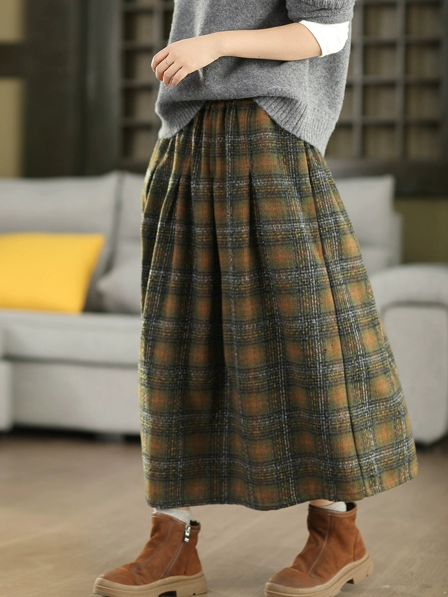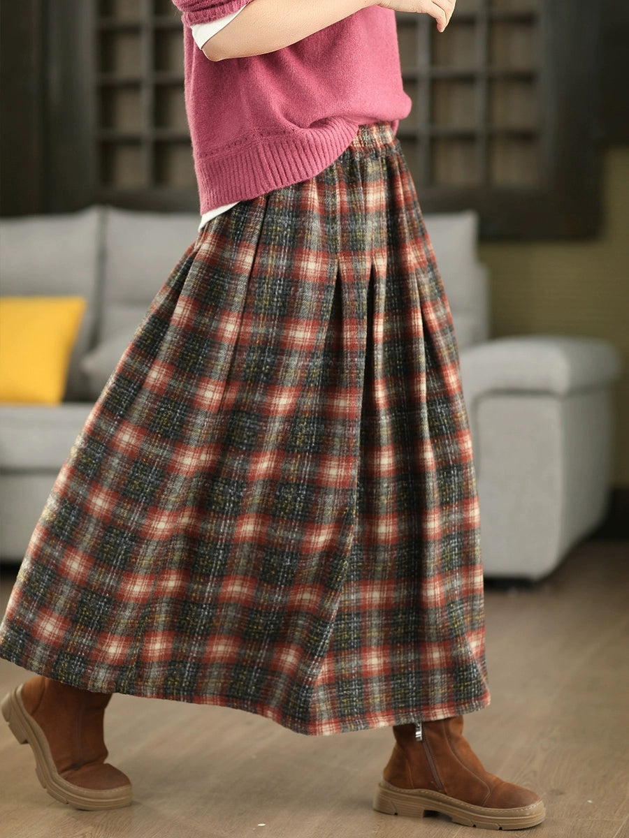 Plus Size Women Autumn Vintage Thigh Plaid Skirt