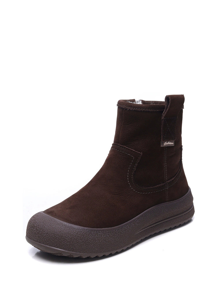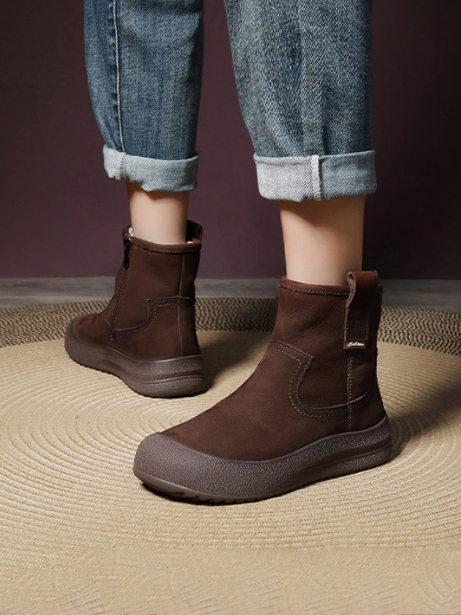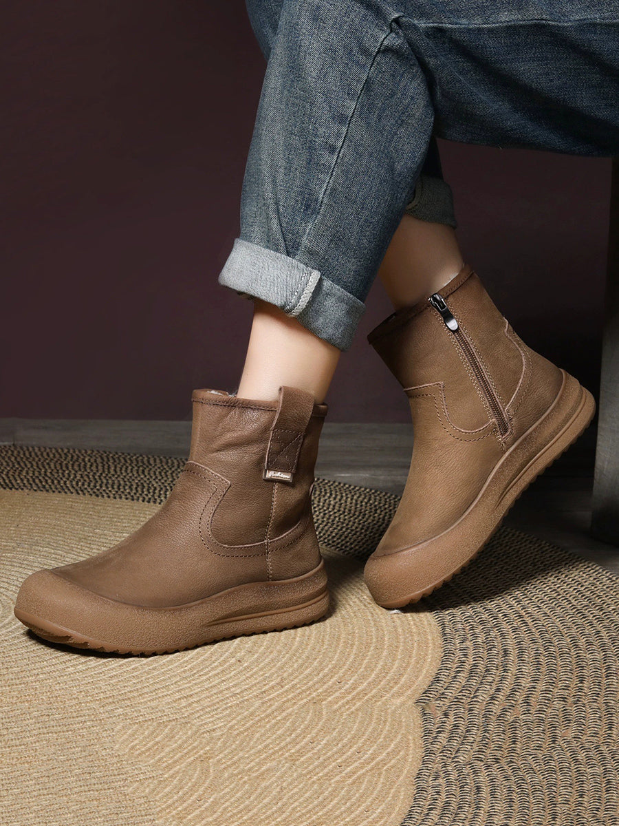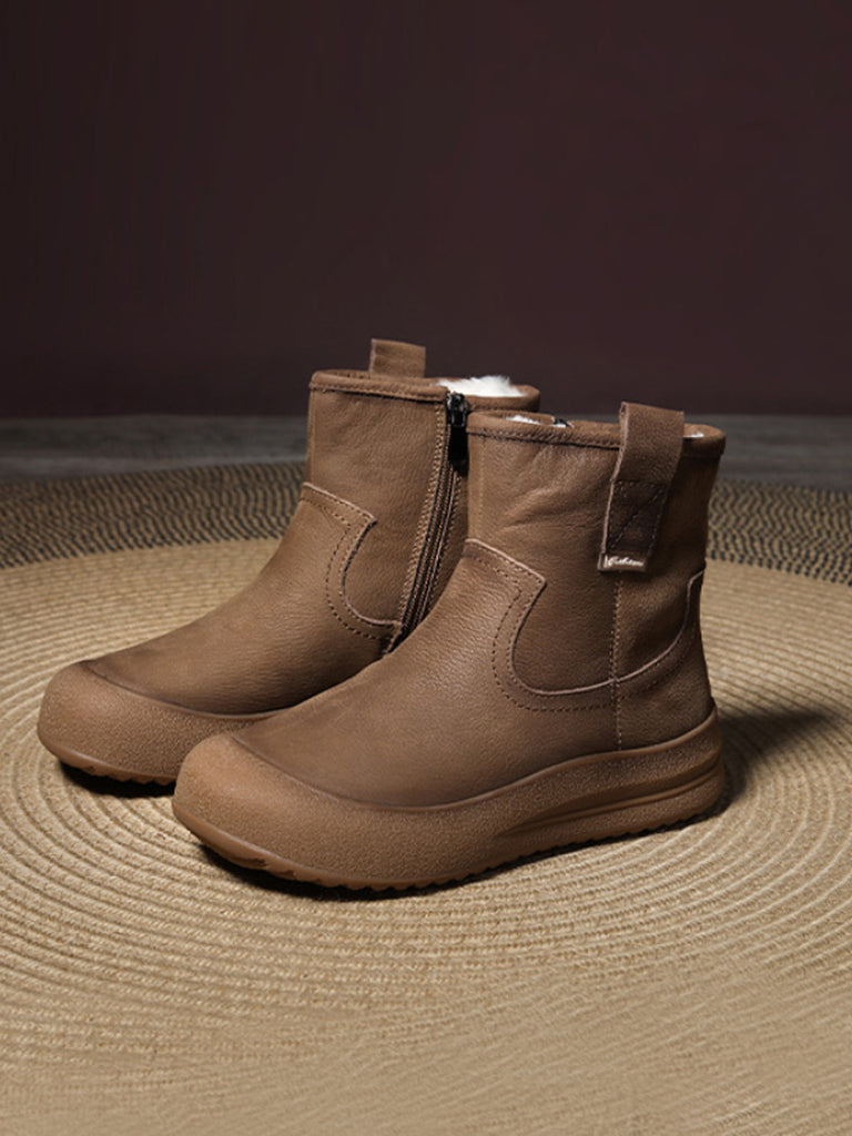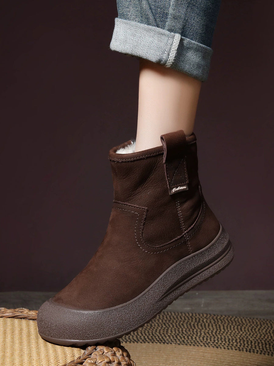Women Vintage Winter Leather Fleece-lined Boots