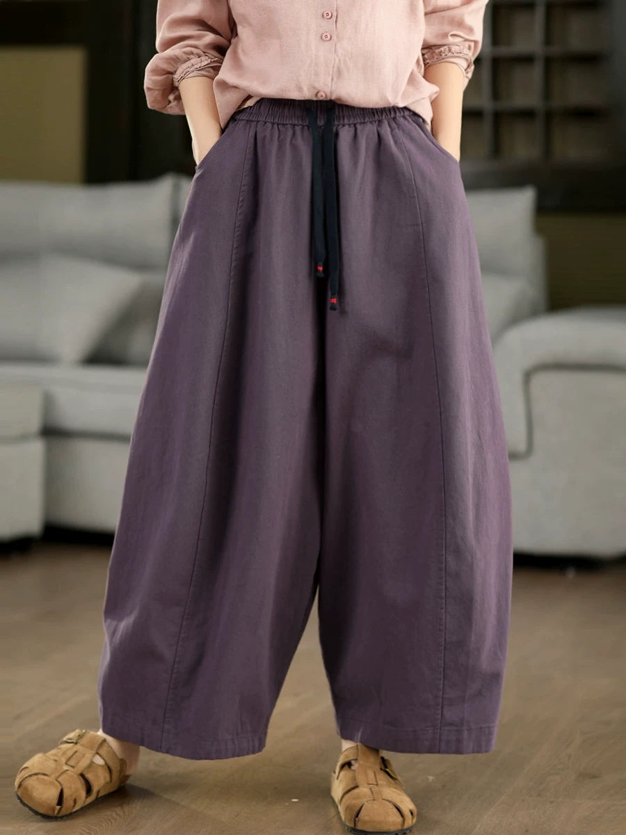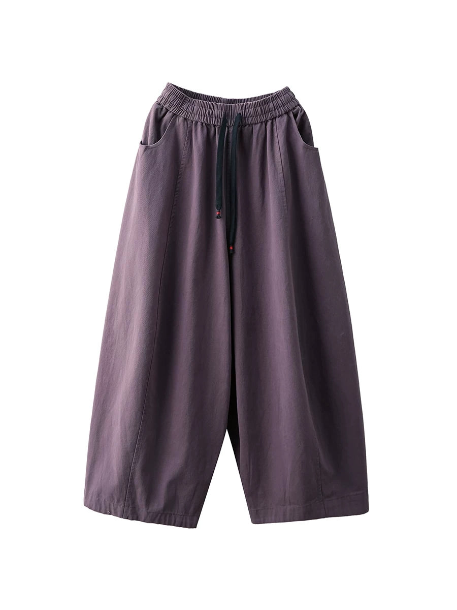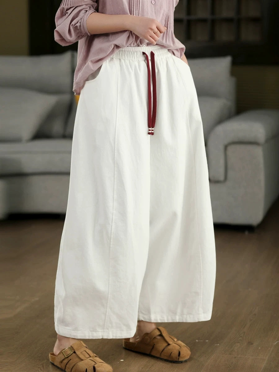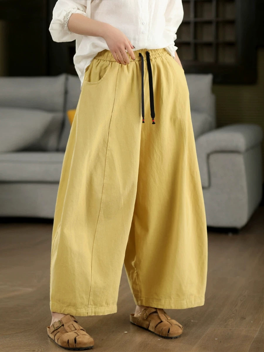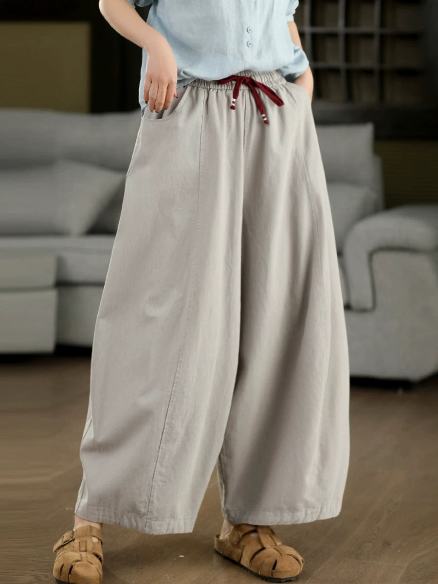 Women Spring Casual Pure Color Wide-leg Pants