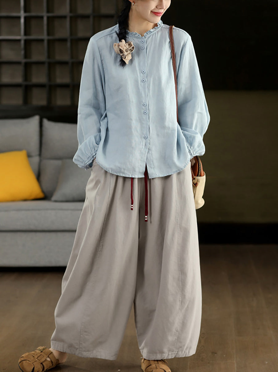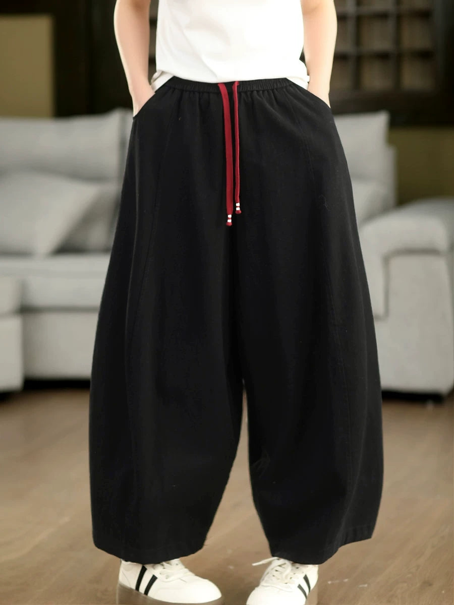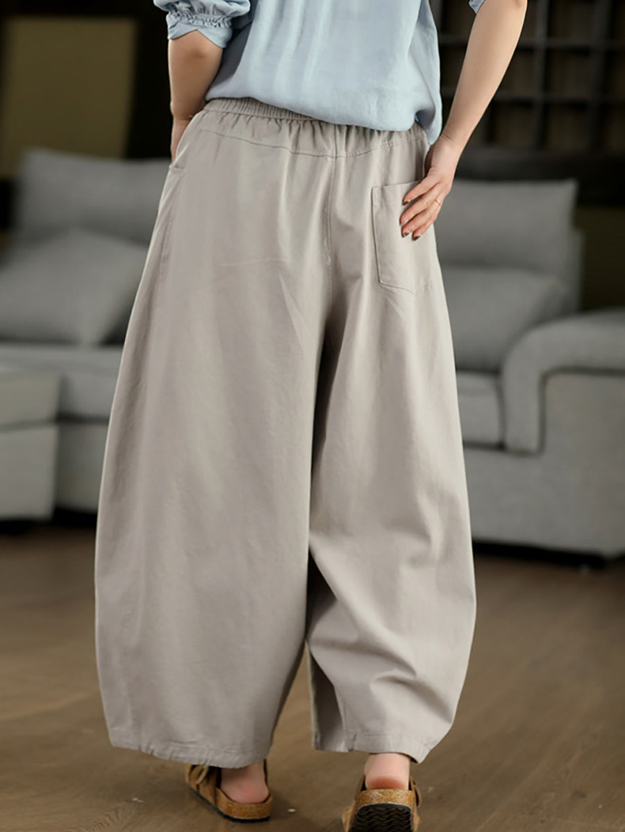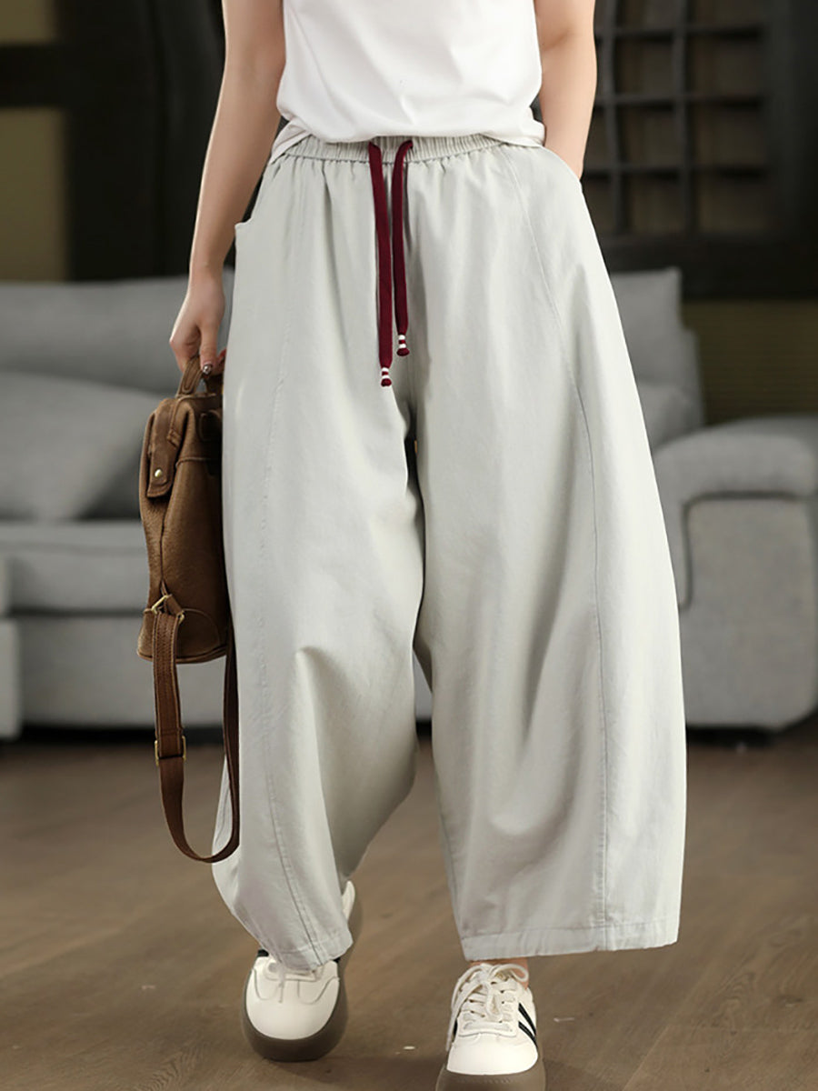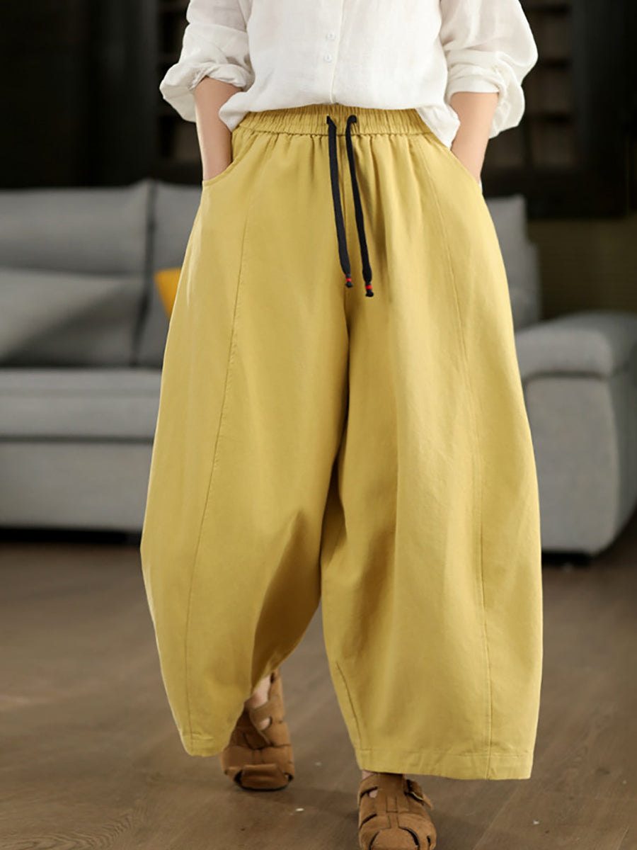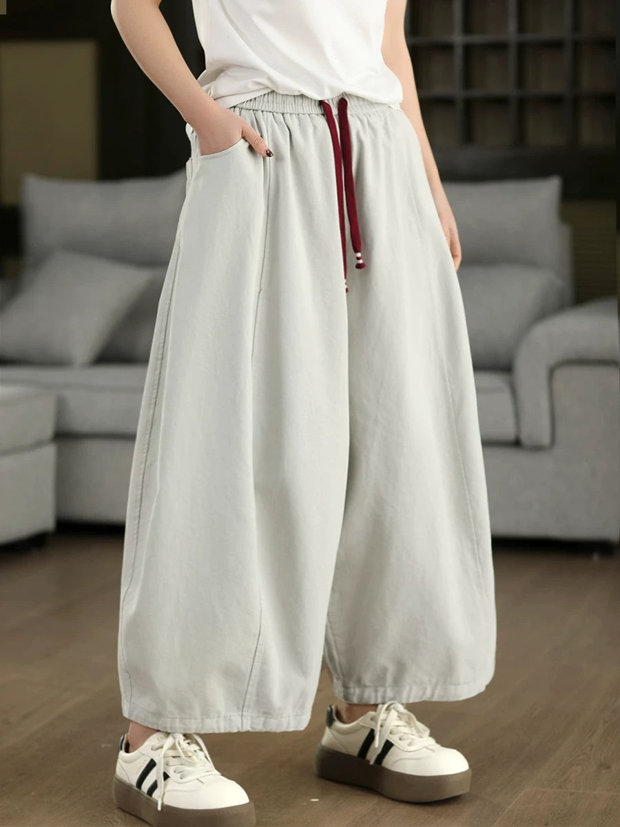 Women Spring Casual Pure Color Wide-leg Pants