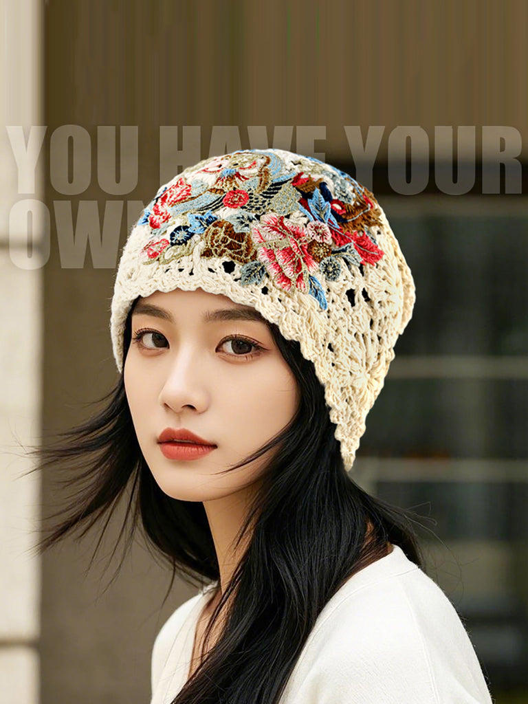Women Vintage Flower Spliced Embroidery Linen Triangular Scarf