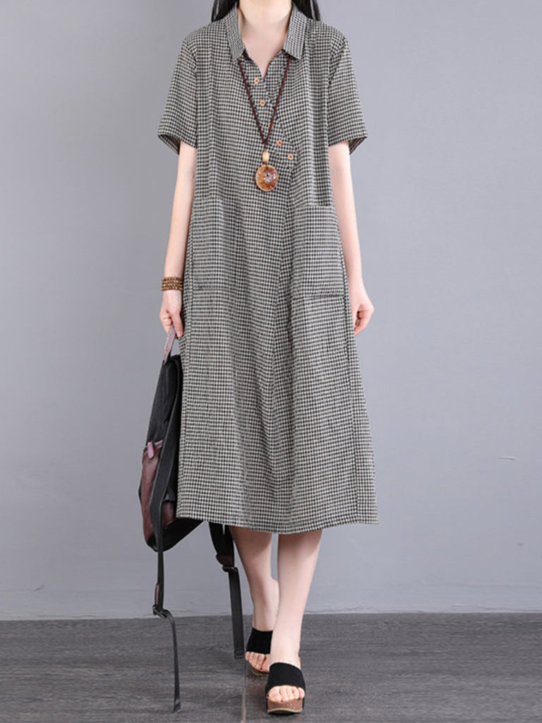 Plus Size Women Summer Vintage Plaid Frog Loose Dress