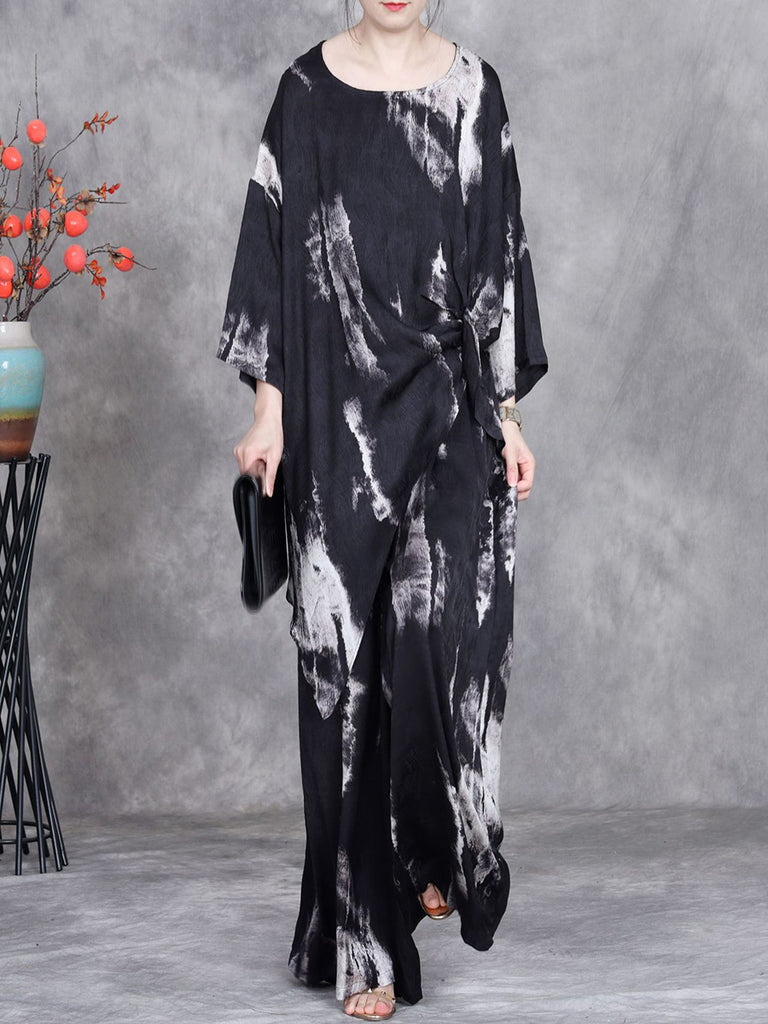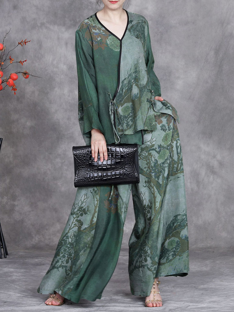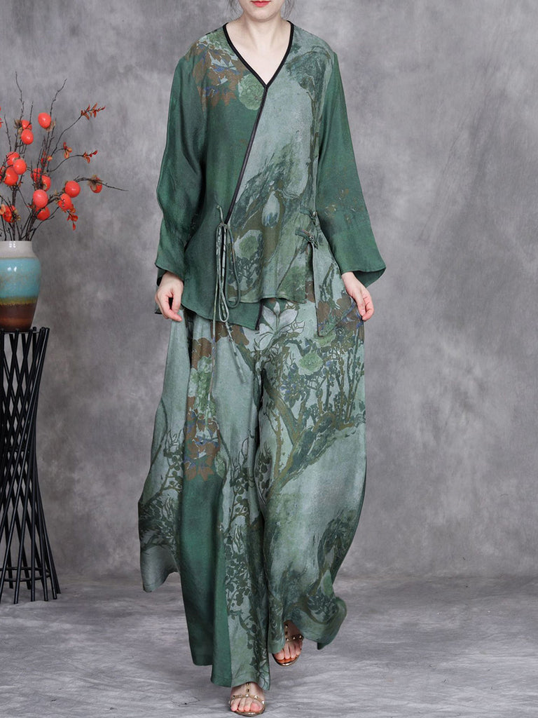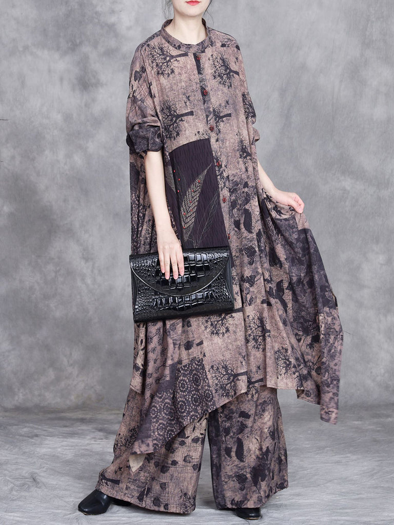 Plus Size Loose Floral Shirt And Wide Leg Pants