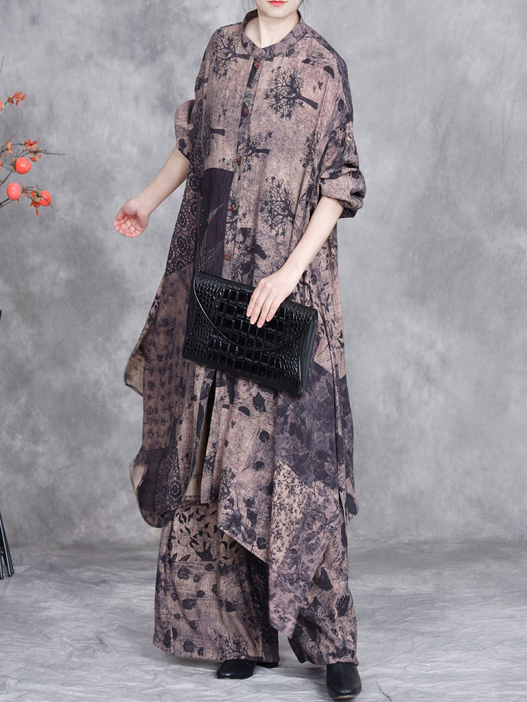Plus Size Women Vintage Solid 100%Ramie Suits