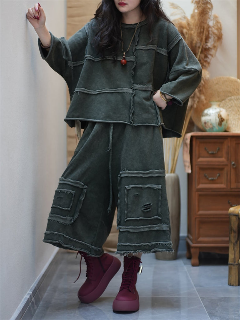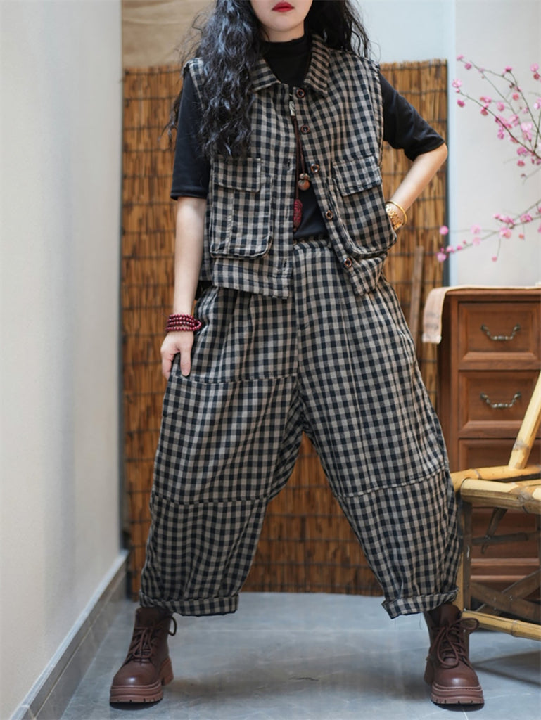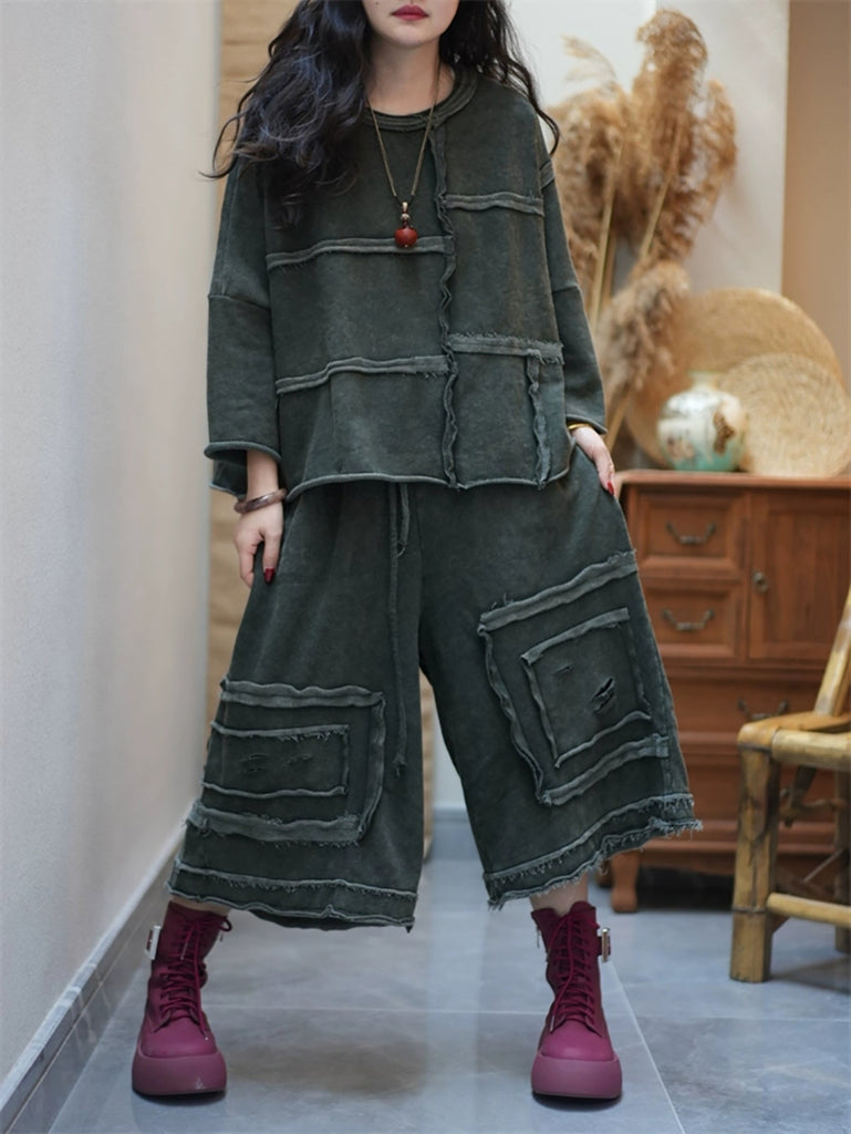 Plus Size Women Summer Vintage Patchwork Loose Suits