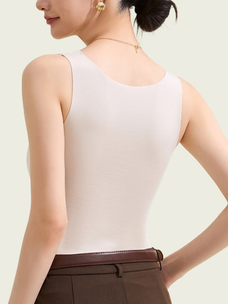 Women Winter Warm Pure Color With Bar Pads Base Vest