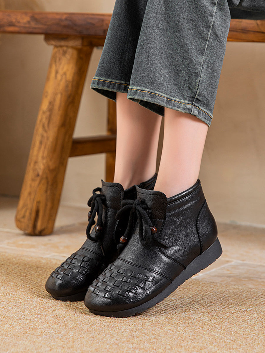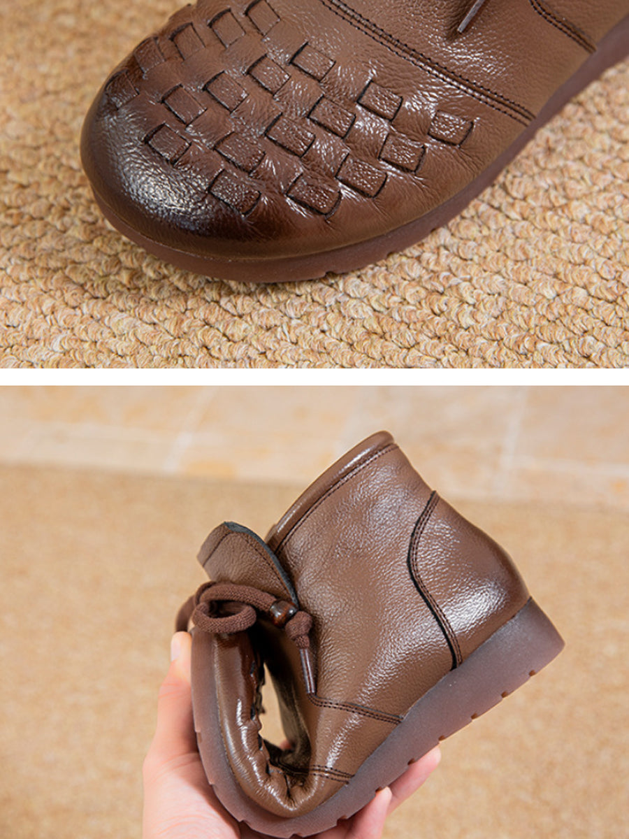 Women Vintage Genuine Leather Spliced Ankle Boots