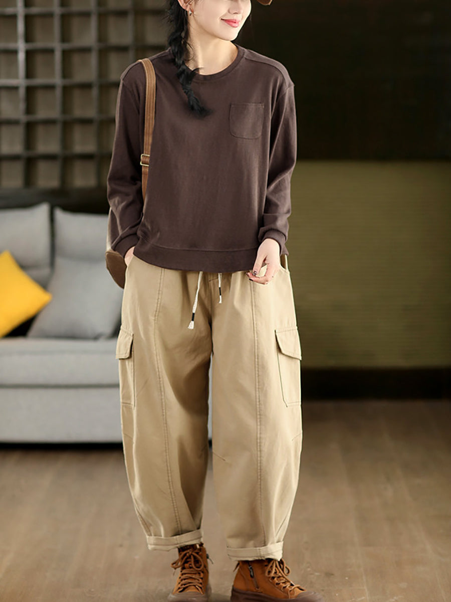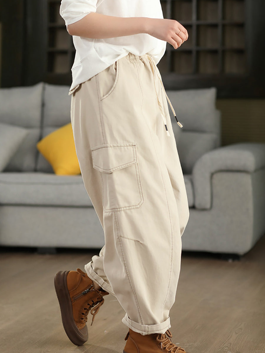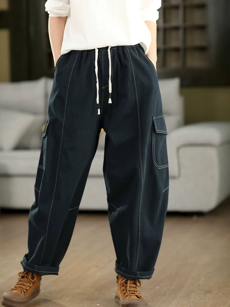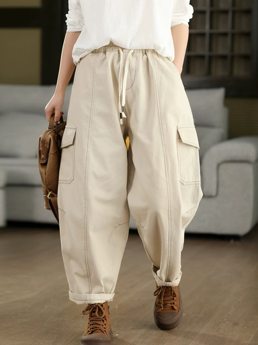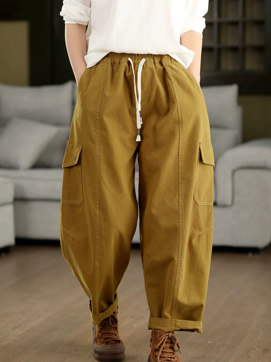 Dámské jarní ležérní bavlněné harémové kalhoty z čisté barvy