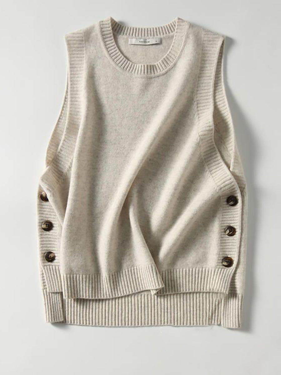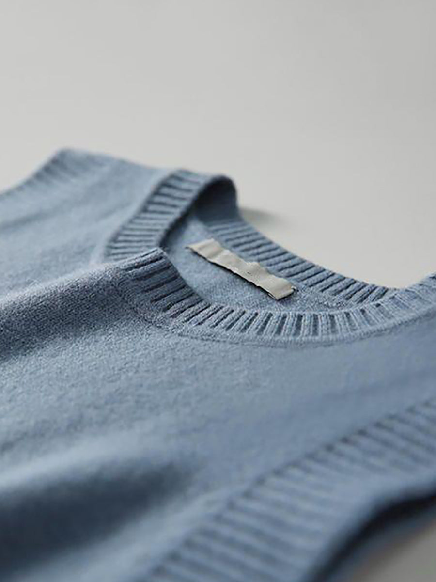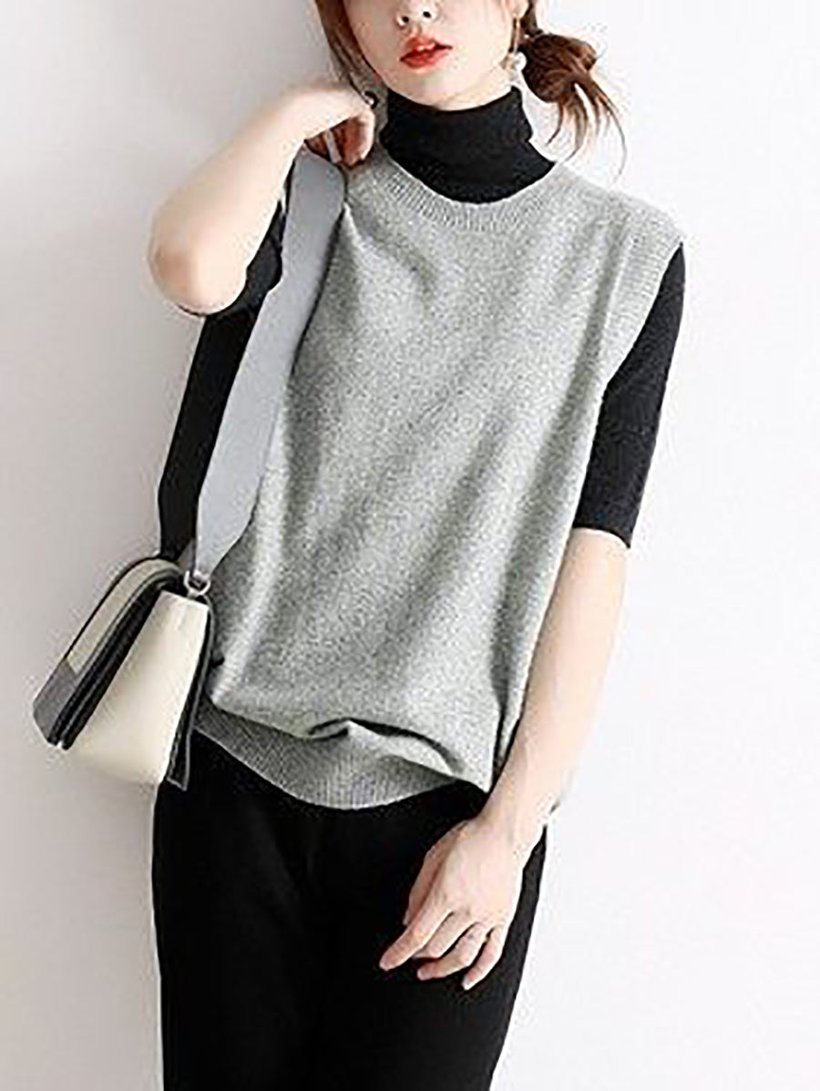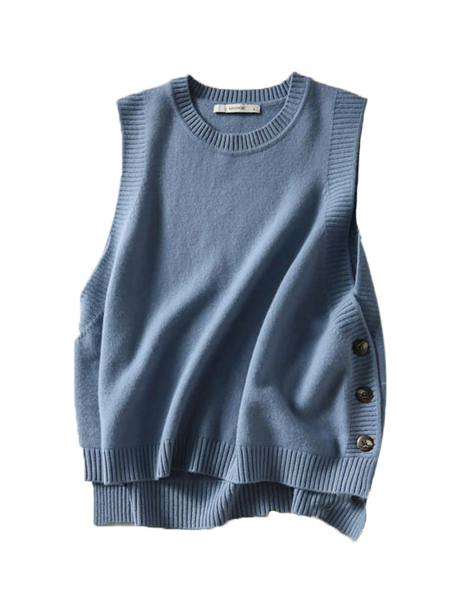 Dámská podzimní umělecká pletená vesta s čistými barvami a výstřihem do O-neck