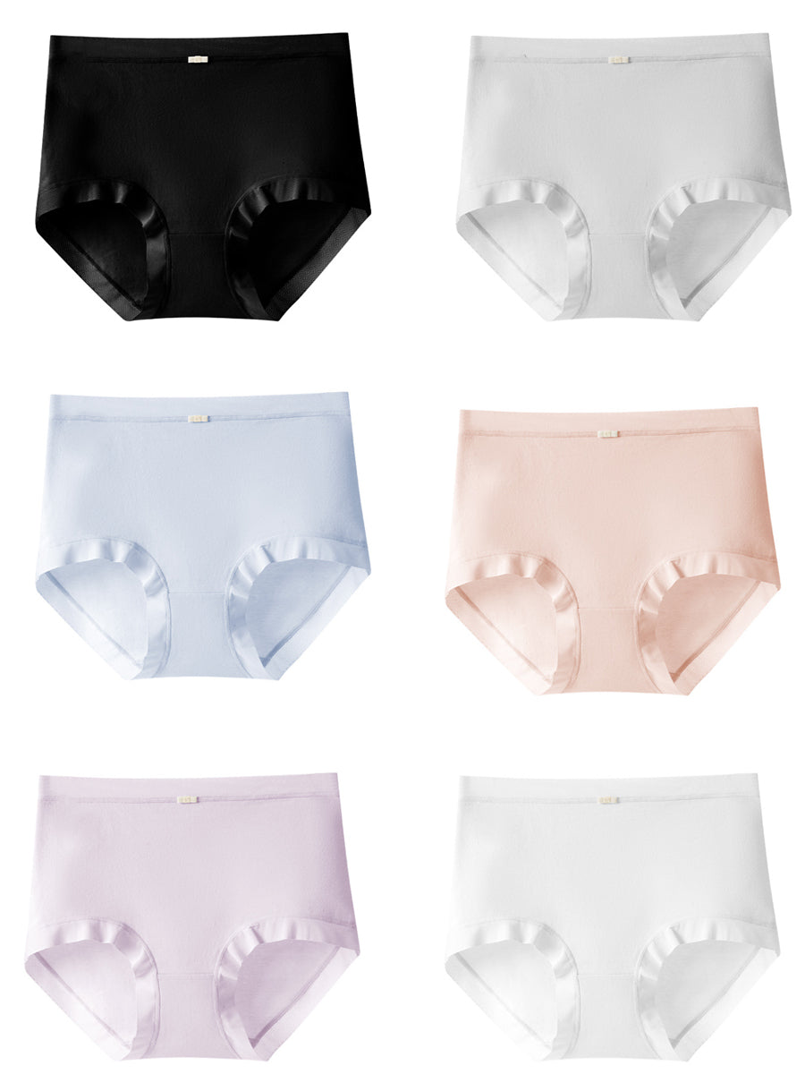 6dílné dámské bavlněné spodní prádlo s vysokým pasem v čistých barvách