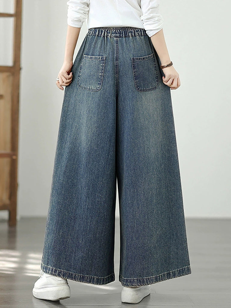 Dámské podzimní umělecké výšivkové džínové kalhoty s širokými nohavicemi