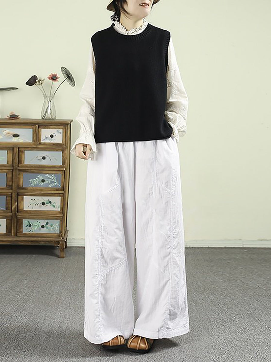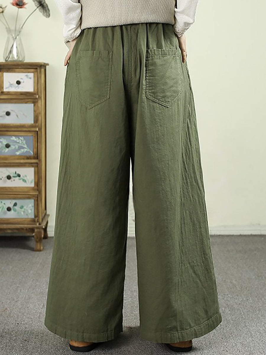 Dámské jarní retro kalhoty se širokými nohavicemi, 100% bavlna