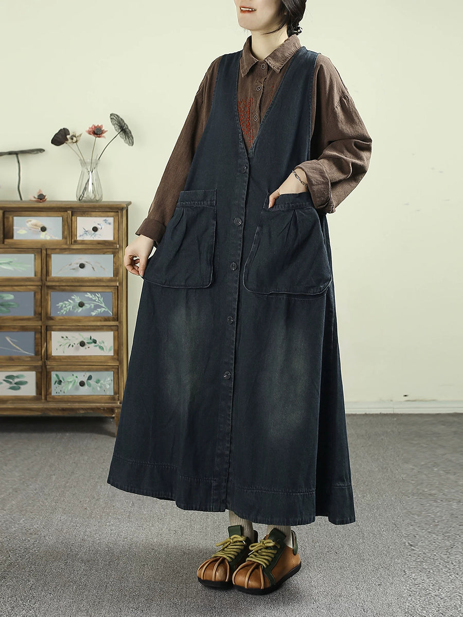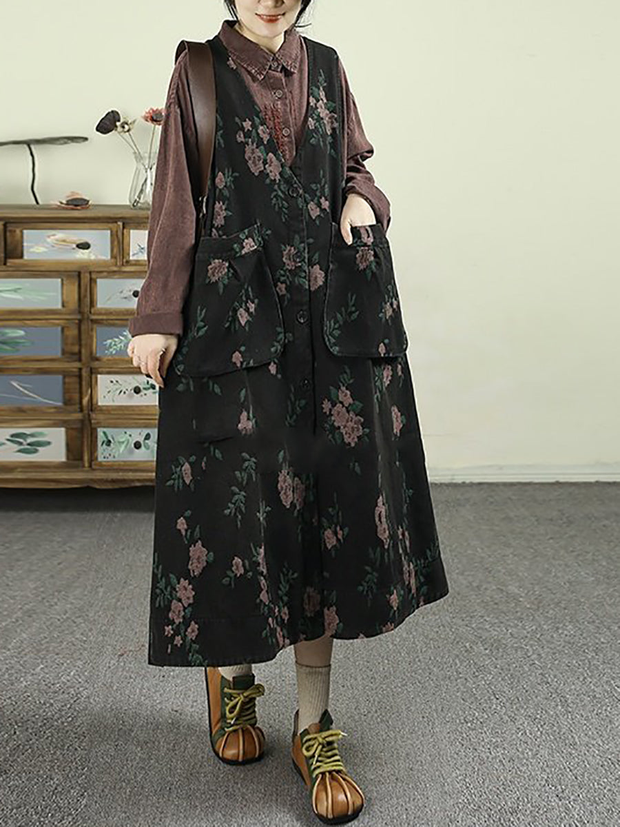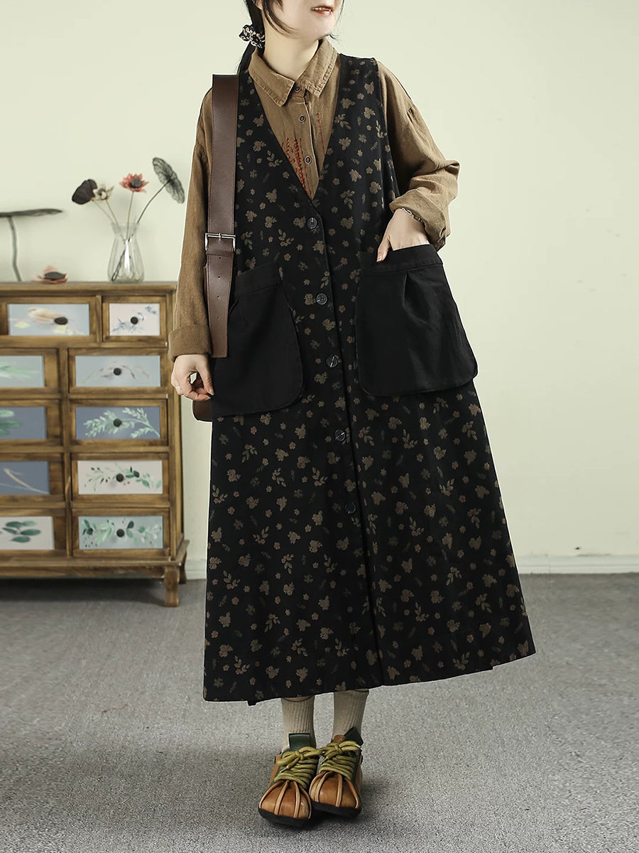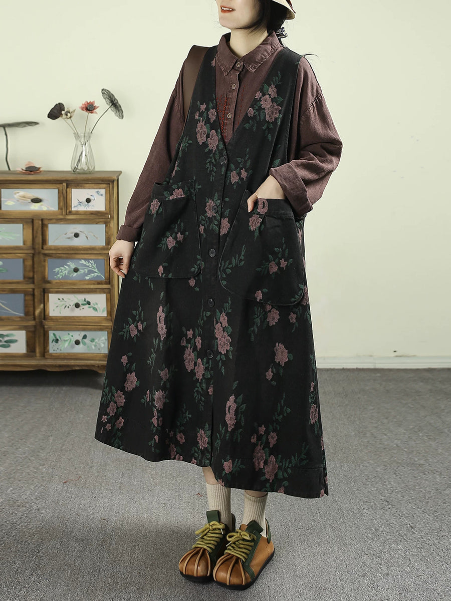 Dámské jarní retro květinové džínové vesty s výstřihem do V